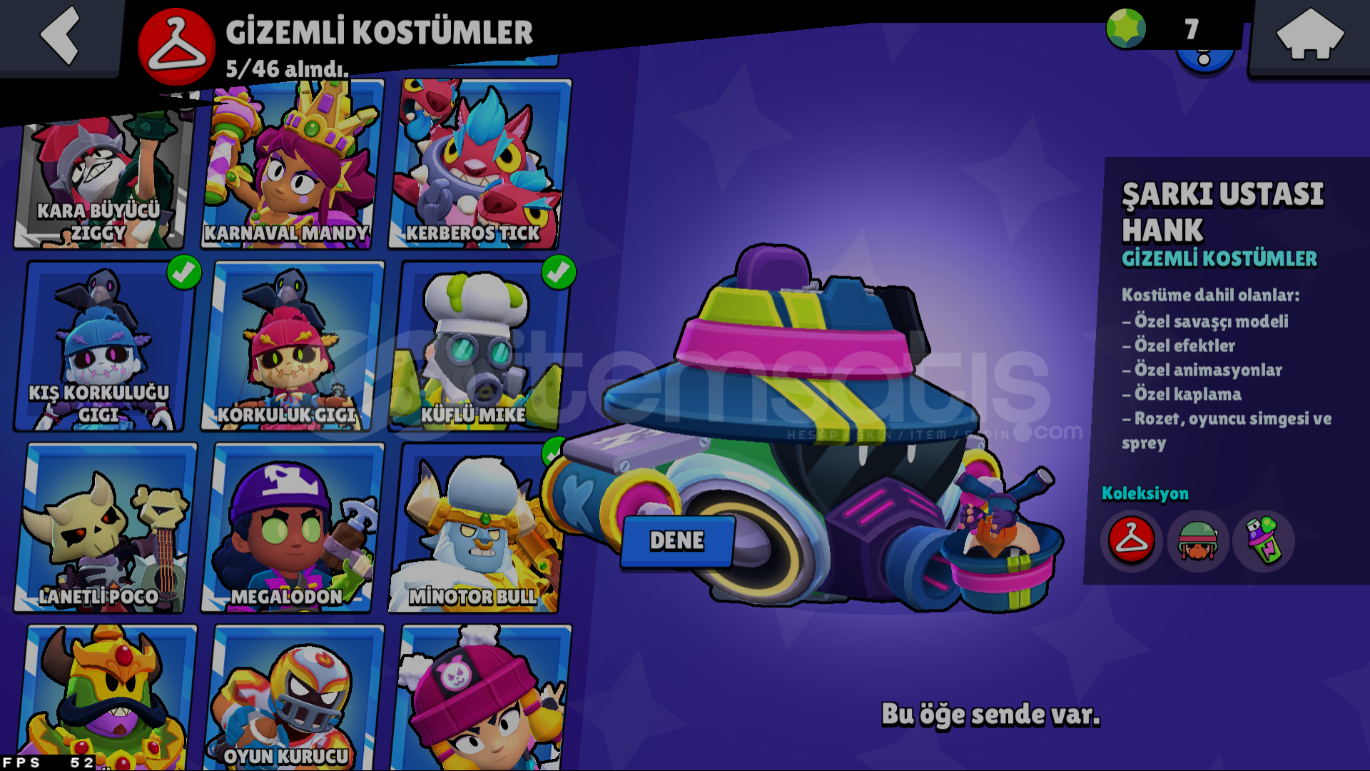 ve 3 tane exclusive kostüm vardır
