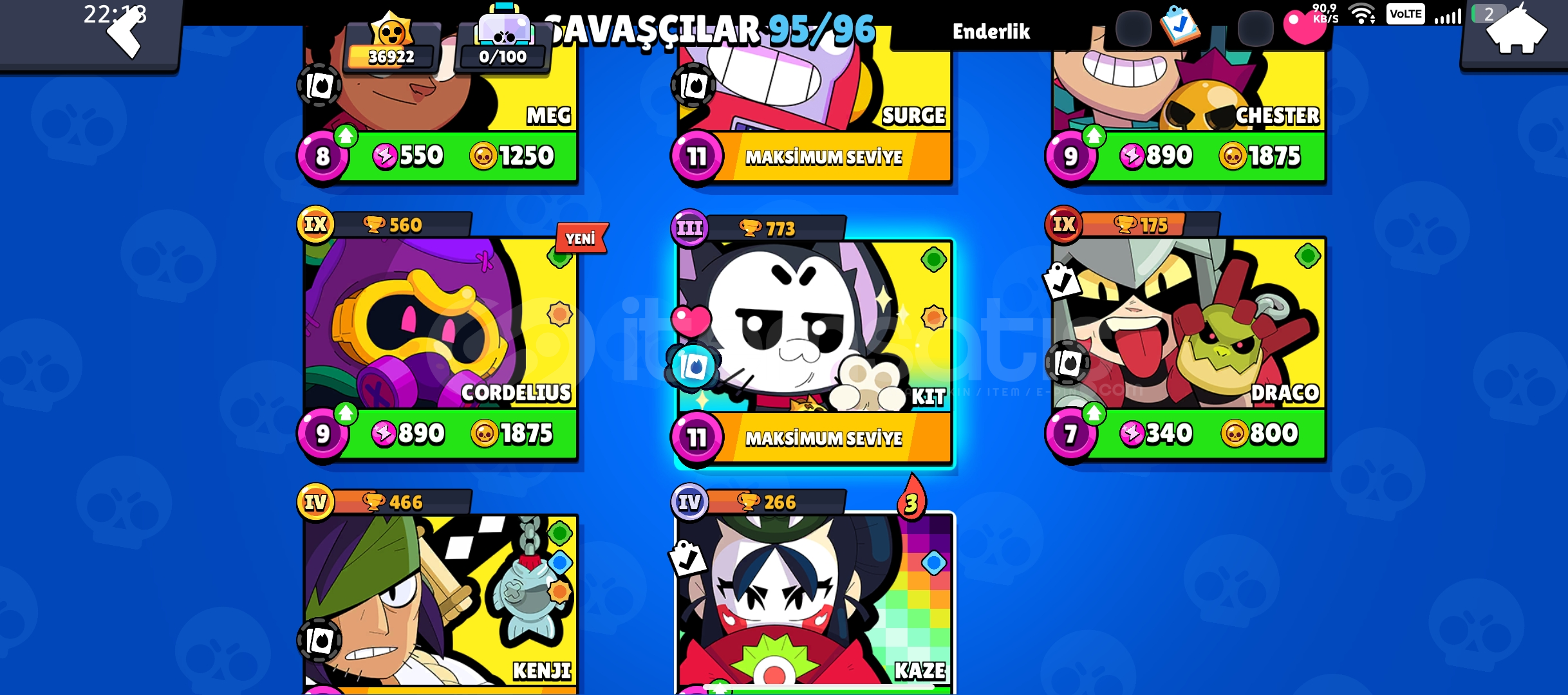 tüm karakterler açık 36 k kupa