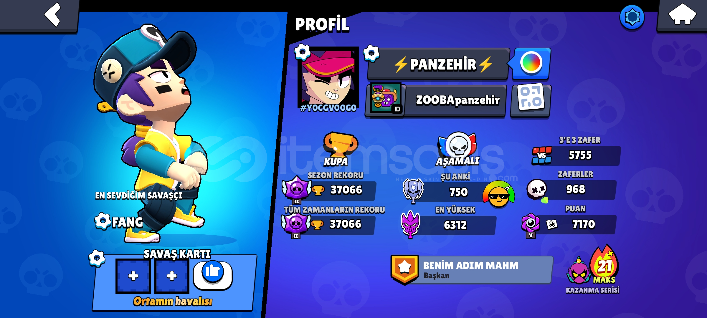 Pandemiden önce başlandıNadir bir hesapHer karakterin kostümü vardır12 tane 1000 kupalık varKarakterlerin seviyeleri yüksek Hesap gmaili sizinki ile değiştirebilirsiniz