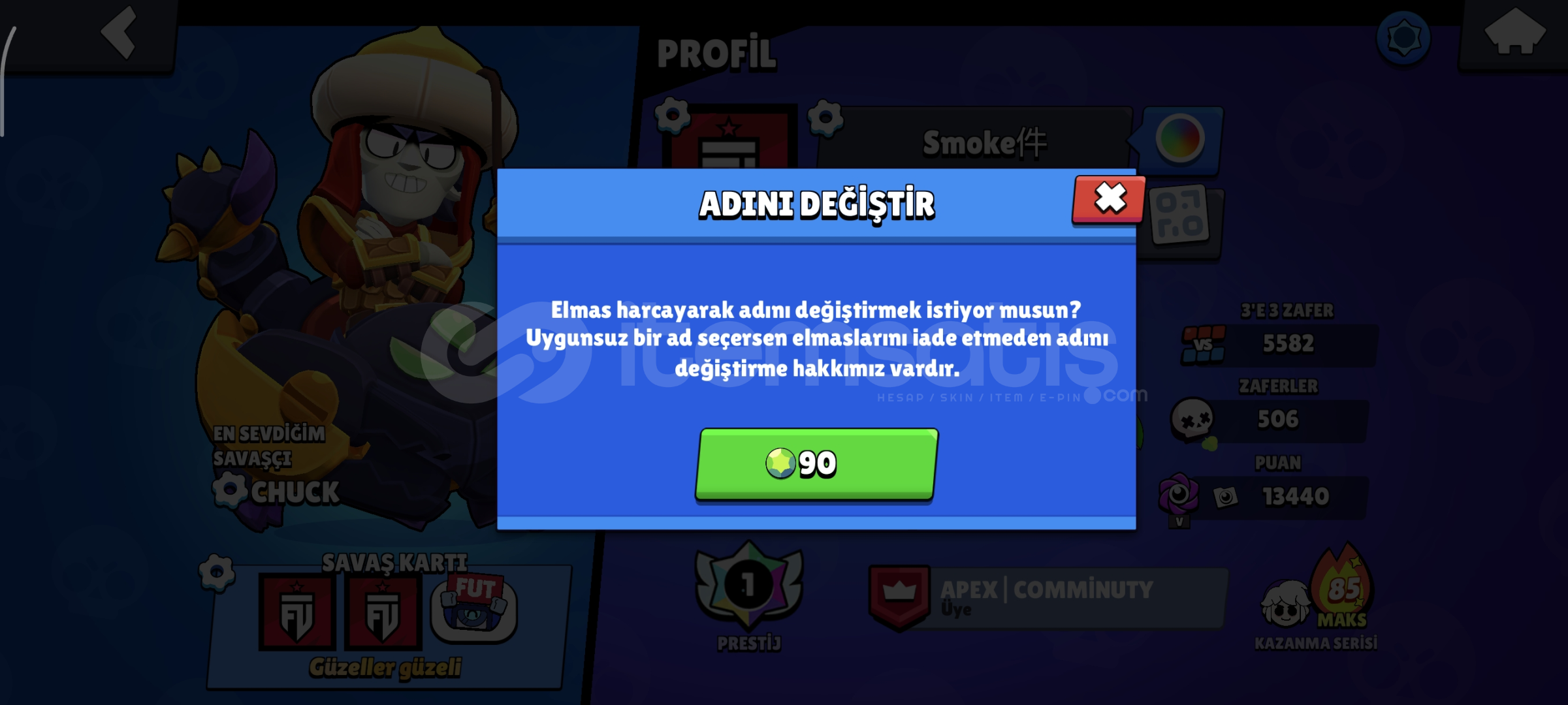 160 kostüm vardır. 74 karakterli Hesap master şuan güncel 602 elmas vardır. 90 elmasa nick değiştiriliyor. hesap koruması gmail değiştirilir. 2019 hesabı 16 tane 11 seviye içinde 13 Tane hipersarj vardır. 308 tane koleksiyon rozet vardır. Oyuncu simgeleri 191 spreyler 108 3 tane bp plus açılmıştır. 8500 kupalık cr hesabıda verilir. 3v3 önem veriyorsanız 5582 arkadaşlık yerimde 88 arkadaş var 30 tanesi 80k üstü Alan kişiye şimdiden hayırlı olsun.
