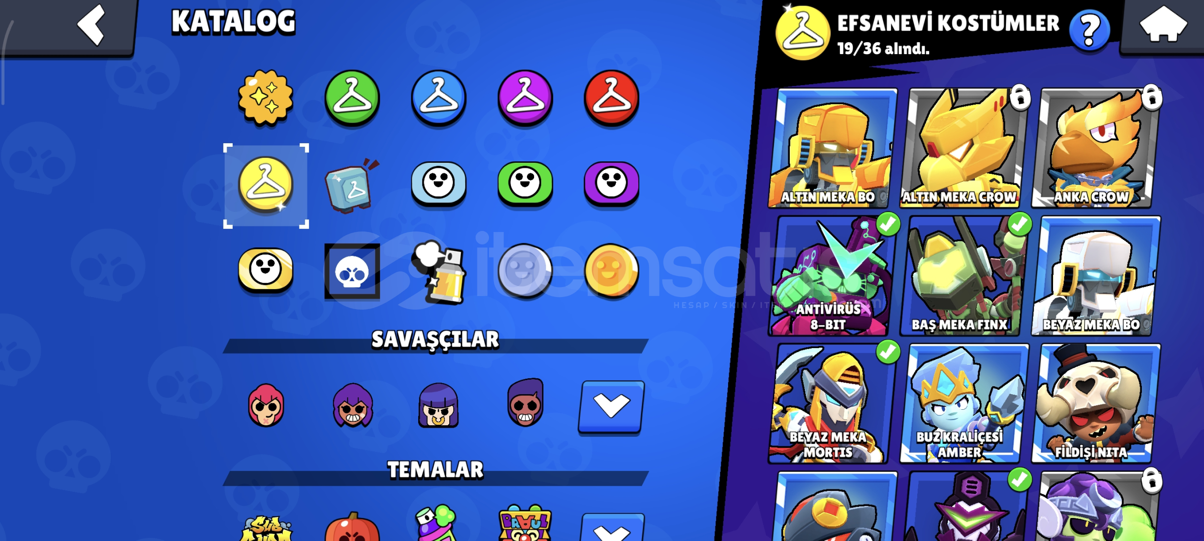 37k lık hesap 19 tane efsanevi kostüm vardır