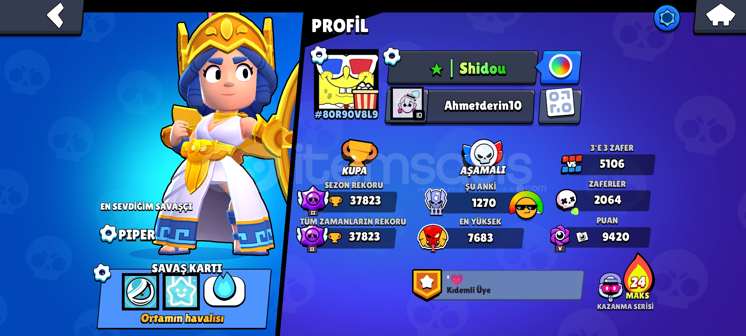 Bravl star full pass acık hesap 12 k mücehver 7tane gizemli kostüm parasına göre güzel hesap