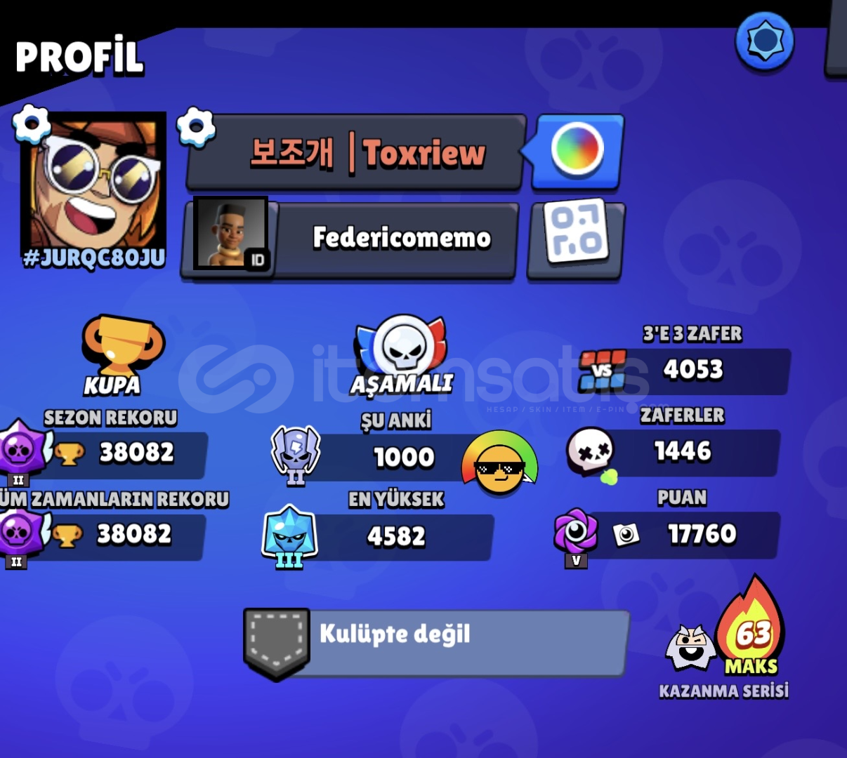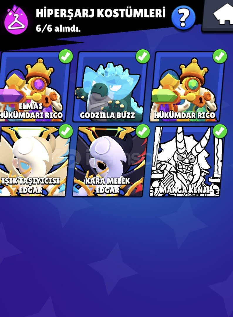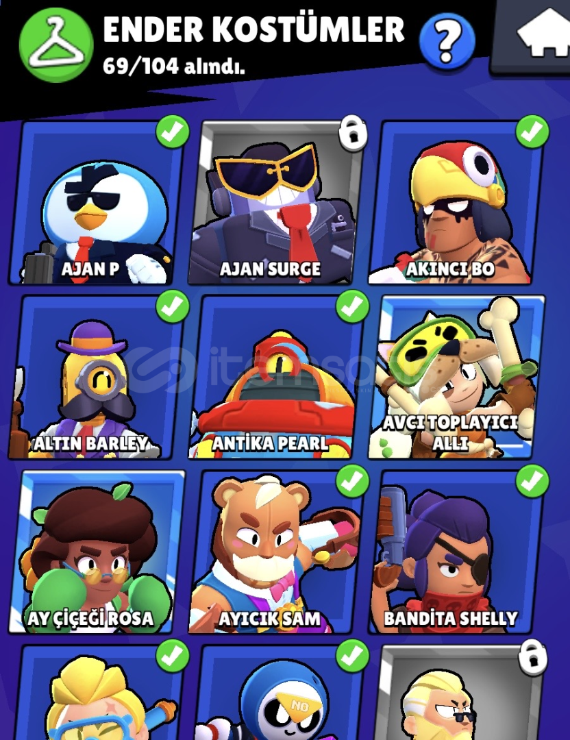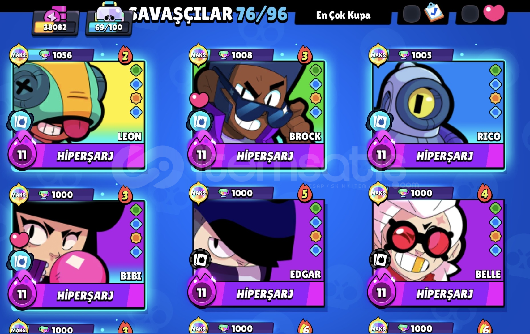 Hesapda1 Brawl pass açılmışdır69 Ender kostüm93 Süper ender kostüm63 Destansı kostüm6 Gizemli kostüm1 Efsanevi kostüm6 Hiperşarjlı kostümolmak üzere toplam 238 kostüm vardır76 altı karakter vardır16 tane hiperşarjı açık karakter vardır21 tane 11 seviye karakter varHesap satın alındıkdan sonra sorumluluk alıcıya aitdirMouse satın almaya &cc...