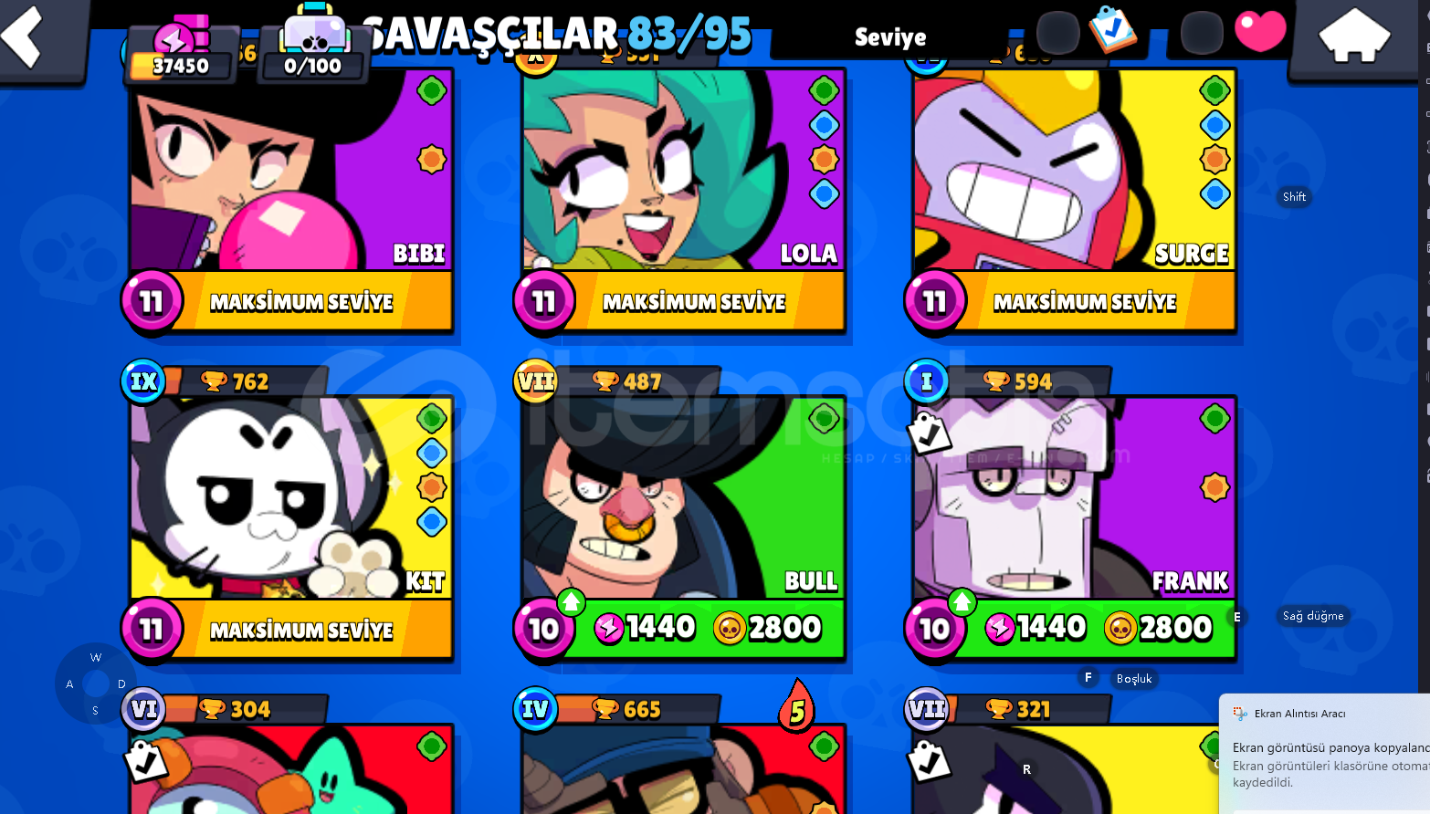 🎮 Satılık Brawl Stars emek hesabı!Toplam 38.000 kupa 🏆 ve 83 karakter mevcut.Yüksek kupalı, dolu içerikli ve sorunsuz bir hesaptır 💥🎭 Kostüm Detayları:✨ 64 Ender Kostüm💎 36 Süper Ender Kostüm🔥 22 Destansı Kostüm🌈 2 Efsanevi Kostüm⚡ Hiper Şarjlar:Toplam 9 adet Hiper Şarj mevcuttur! ⚡💡 Ek Bilgiler:🚫 Ban veya uyarı ge&...