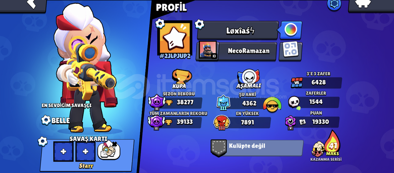 eski 2 tane brawl pass bulunuyorninja ashaltın el bellesaf altın bellebelle maindir hesap bütün belle skinleri full22 tane max karakter vardırMAİL DEĞİŞİR HESAP KORUMA KAPALIDIR