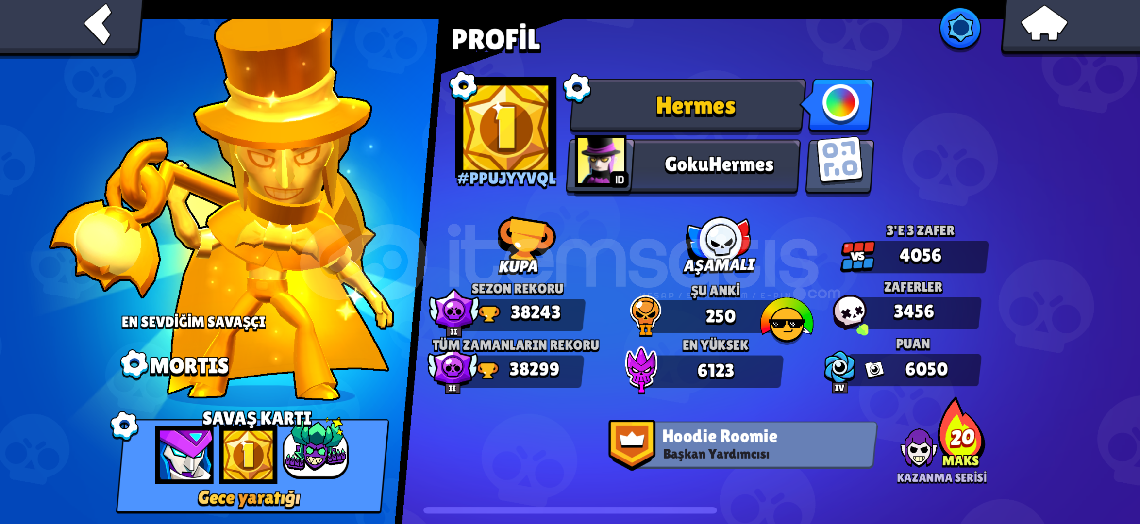 38500 kupa Tüm mortis skinnleri açık hokeyci hariç 53 Ender 52 Süper Ender 57 Destansı 3 Gizemli 6 EFSANEVİ 3 HİPER SARJLI SKİNN VAR 6 YILLLIK HESAP