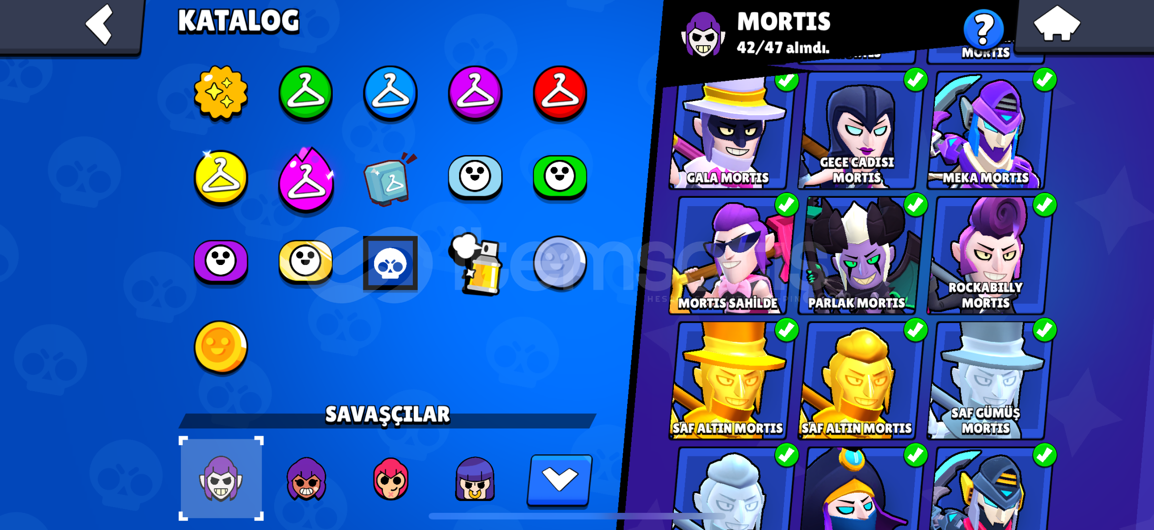 38500 kupa Tüm mortis skinnleri açık hokeyci hariç 53 Ender 52 Süper Ender 57 Destansı 3 Gizemli 6 EFSANEVİ 3 HİPER SARJLI SKİNN VAR