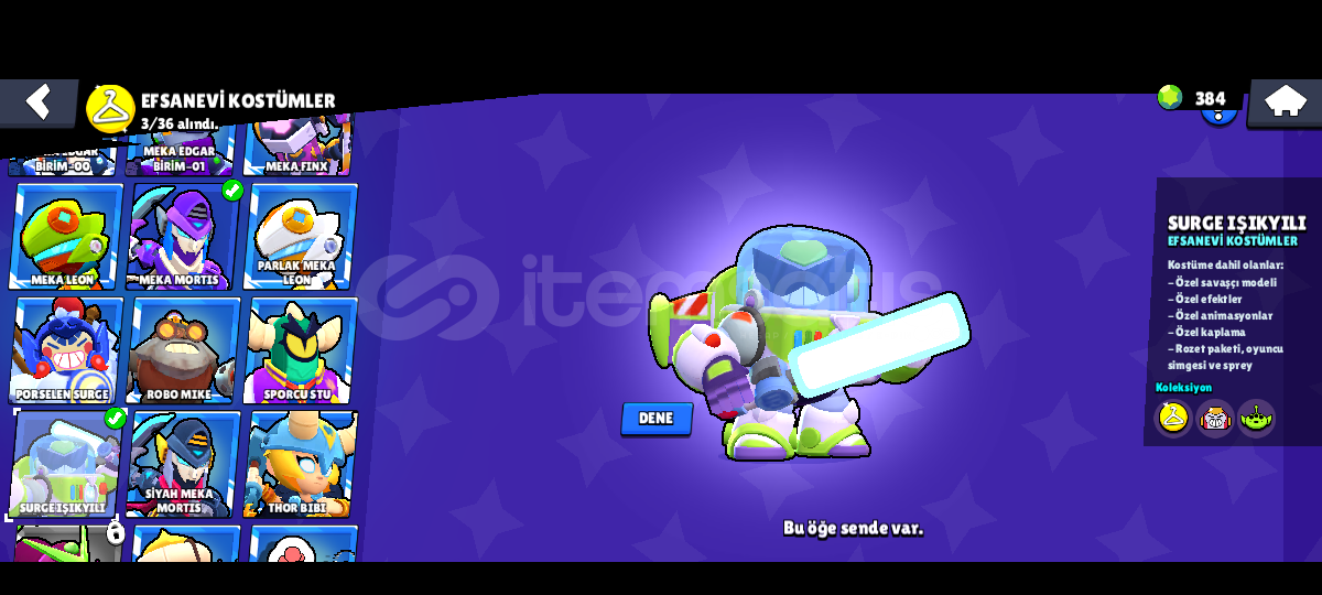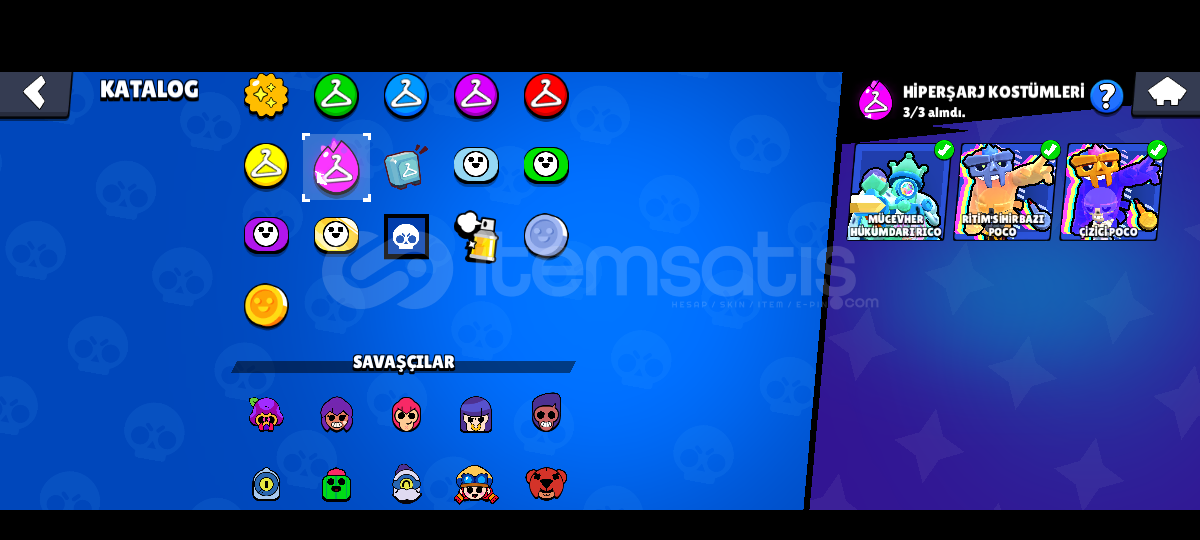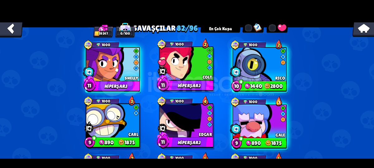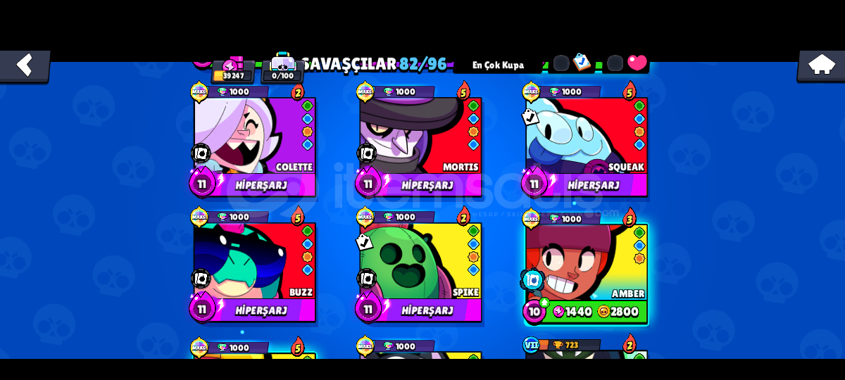 Hesapta 12 tane 1000 Kupa 10 hiperşarj var 3 efsanevi kostüm ve 3 hiperşarj kostüm bulunuyor ekstra olarak hesapta 384 elmas var ilgilenen yazabilir