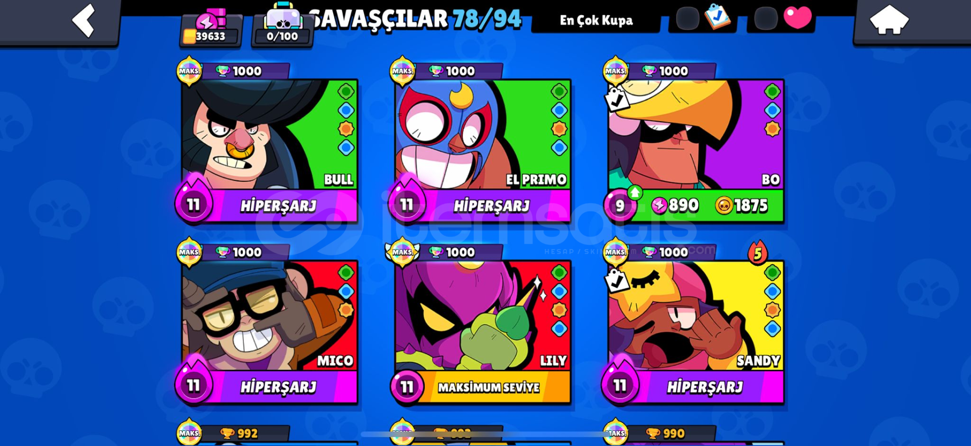 hesap güncel olarak 39.600 kupaya sahiptir ve hesap içerisinde 78/94 karakter mevcuttur.88 Taş Vardır.11 Adet max tier vardır.Lilly 1534 Sezon rekoru yapılmıstır.hesap içerisinde oyun içerisindeki nadir kostümler bulunur görselleri inceleyebilirsiniz.hesaptaki kostüm sayıları;50 ender56 süper ender48 destansı5 gizemli11 efsanevi3 HiperŞarjSatın...