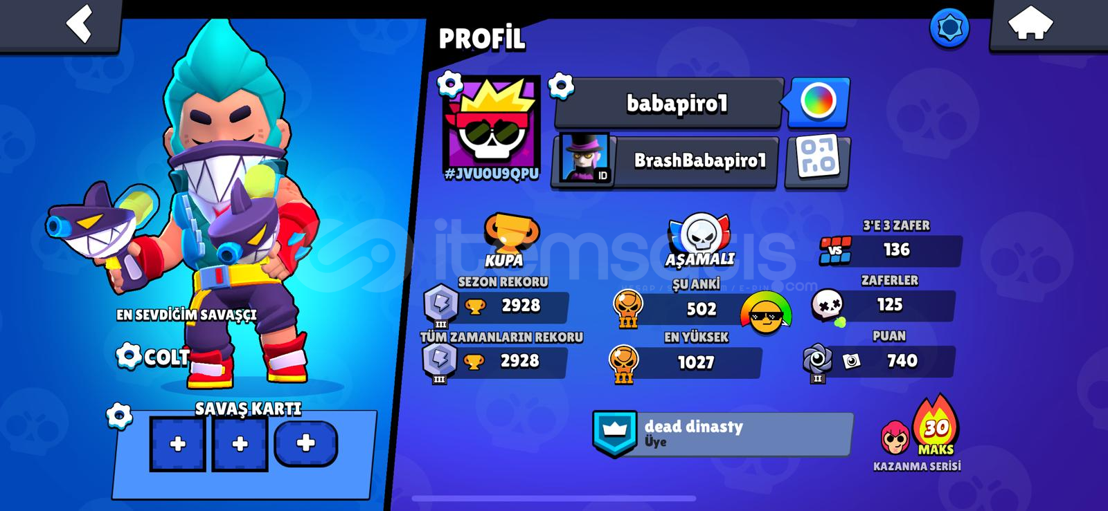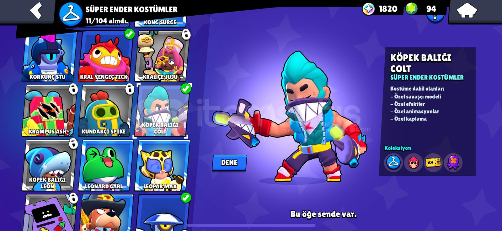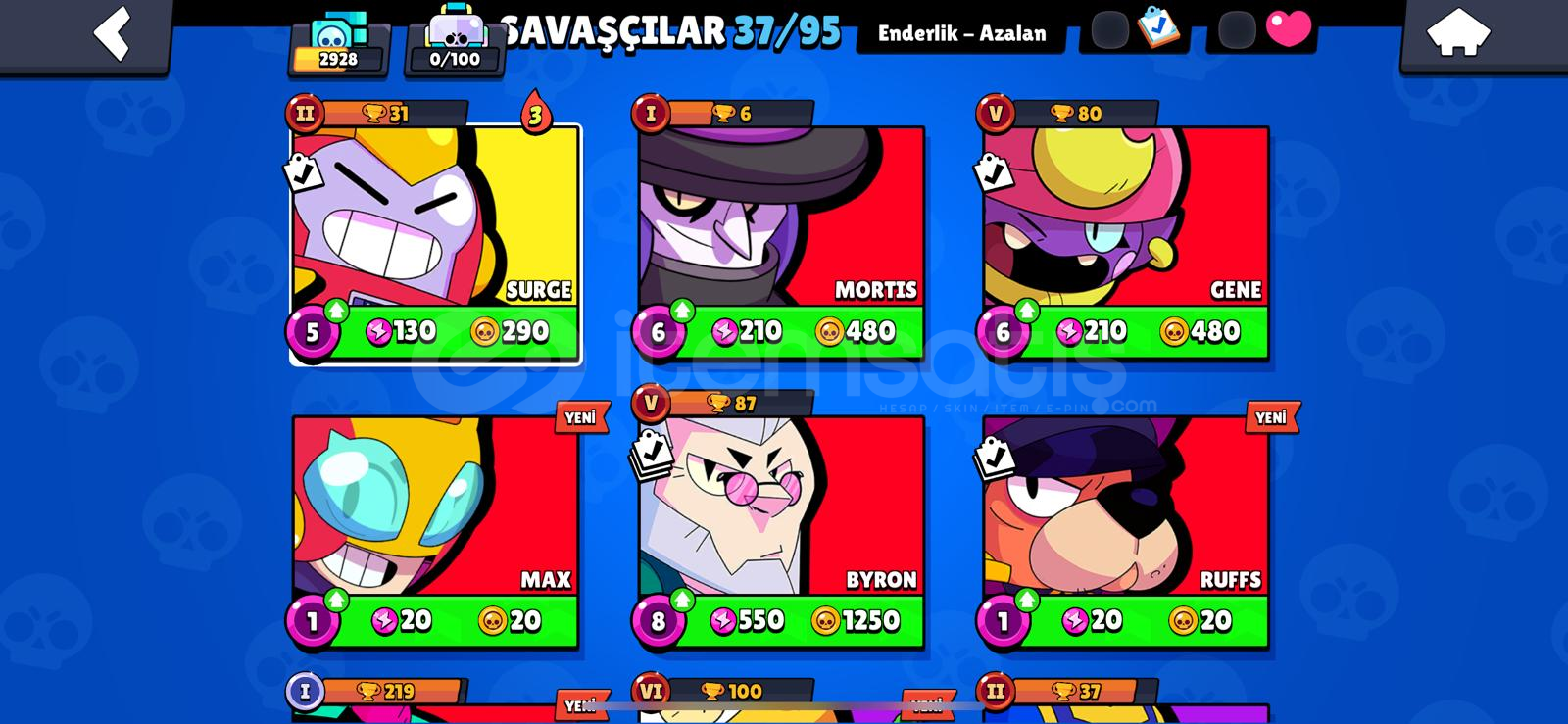 3k 37 karakter 1 hiper isim değiştirmeli95 taş6.5k gold1800 mucevher1 efso 6 gizemli1 hiper1 efsanevi4 destansı11 süper19 ender kostümMail değiştirilip teslim edilecektir değişmezse maille teslim edilirHesaplarda koruma yokturİtemsatış'ın supercell oyunları konusunda en yuksek müşteri memnuniyetine sahip mağazası olarak tekrar hizmetinizdeyizAsla hiçbir müşterimizi mağdur etmeyiz ...