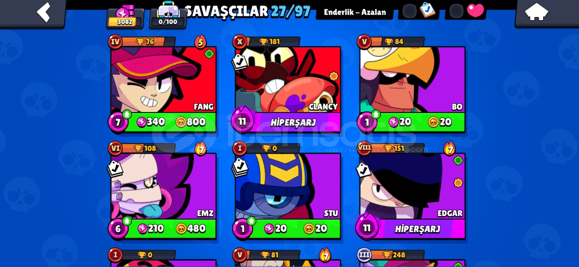 Mail Değişimi Yapılacaktır ve Hesap Tamamen Sizin Üzerinize Olacaktır.Hesaptan Çıkış Videosu Atılacaktır.Hesapta 18 Skin Bulunmaktadır.Hesapta 27 Karakter Bulunmaktadır.Alıcısına Şimdiden Hayırlı Olsun :)