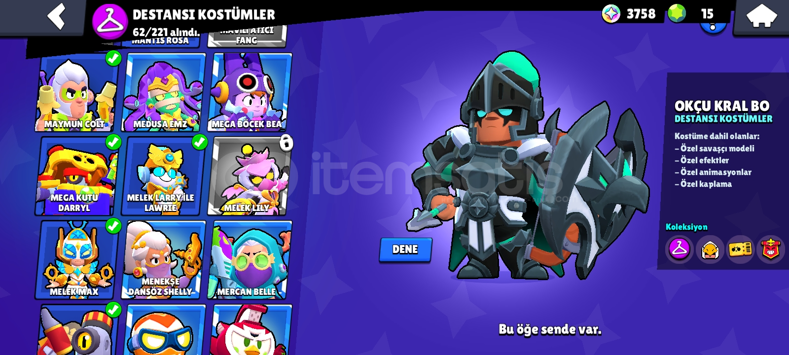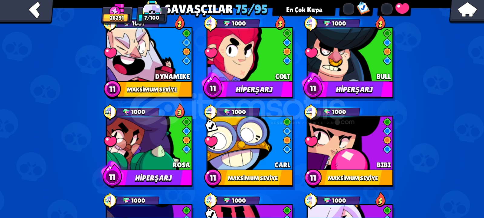 3 hesap birlikte teslim edeceğim. Daha fazla fotoğraf koymak için 3 ilan açtım. Profilimden diğer 20 tl yazan ilanları satın almayın. İndirim olur gelin konuşalım yazmaktan çekinmeyin. Tekli fiyat isterseniz tekli fiyat da verebilirim. Hesap 2020 kurumdur. 1300 lira yatırılmış 3 brawl pass alınmıştır. Hesqbın tek eksiği kupasıdır, geri kalan şeyler müthiştir, bir sürü hiperşarj çok iyi leveller bir sürü 1000 kupa karakter ve bir sürü kostüm var hesapta. Sorunuz olursa sohbete beklerim. Hesabı aktif kullanıyorum birkaç skin daha alındı ve dynamike 1000 kupa oldu. Hesap 26.500 ial 27.000 arasındadır aktif oynuyorum.