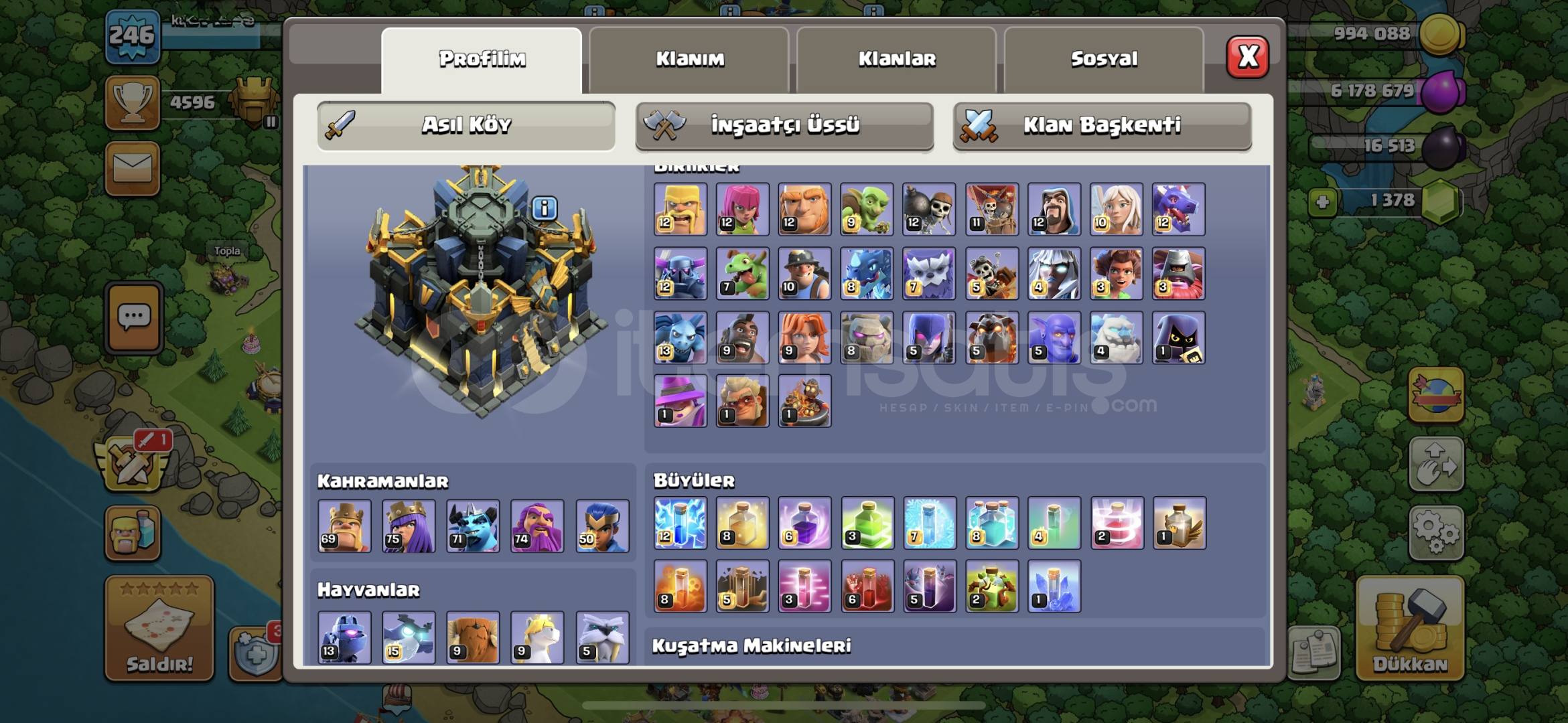 ✨ TEK MAİLDE 4 OYUN HESABI ✨🔥 Clash of Clans (Th17)🏰 Savunmalar max🦸‍♂️ Hero’lar 1 tık geride, laboratuvar çok iyi🌲 Yan köy max’a yakın, 246 seviye⚔️ Ekipmanların hepsi mevcut ve yüksek seviyede⚡ Brawl Stars🏆 66.500 kupa👕 301 kostüm (112 destansı + değerli paralı kostümler)💎 90 taş + isim değiştirme hakk...