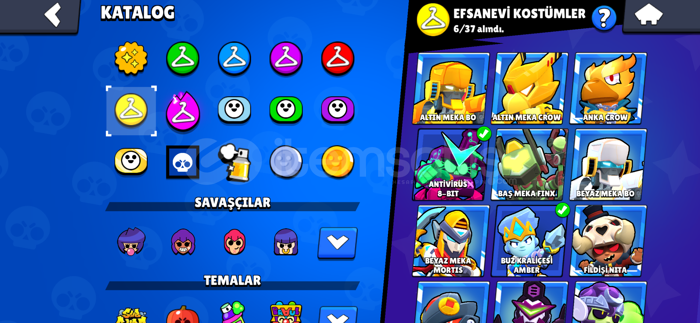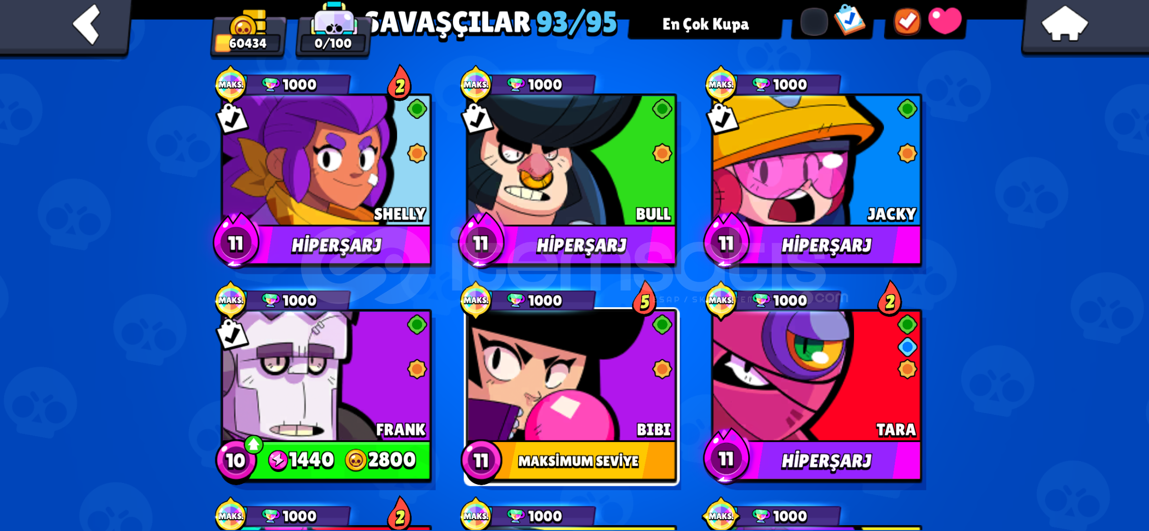 400 Elmaslı 110000 Altınlı 27000 Mücevherli 93 Karakterli 202 Kostümlü 60k Hesap1.500.000 kupalı kulüp baş...