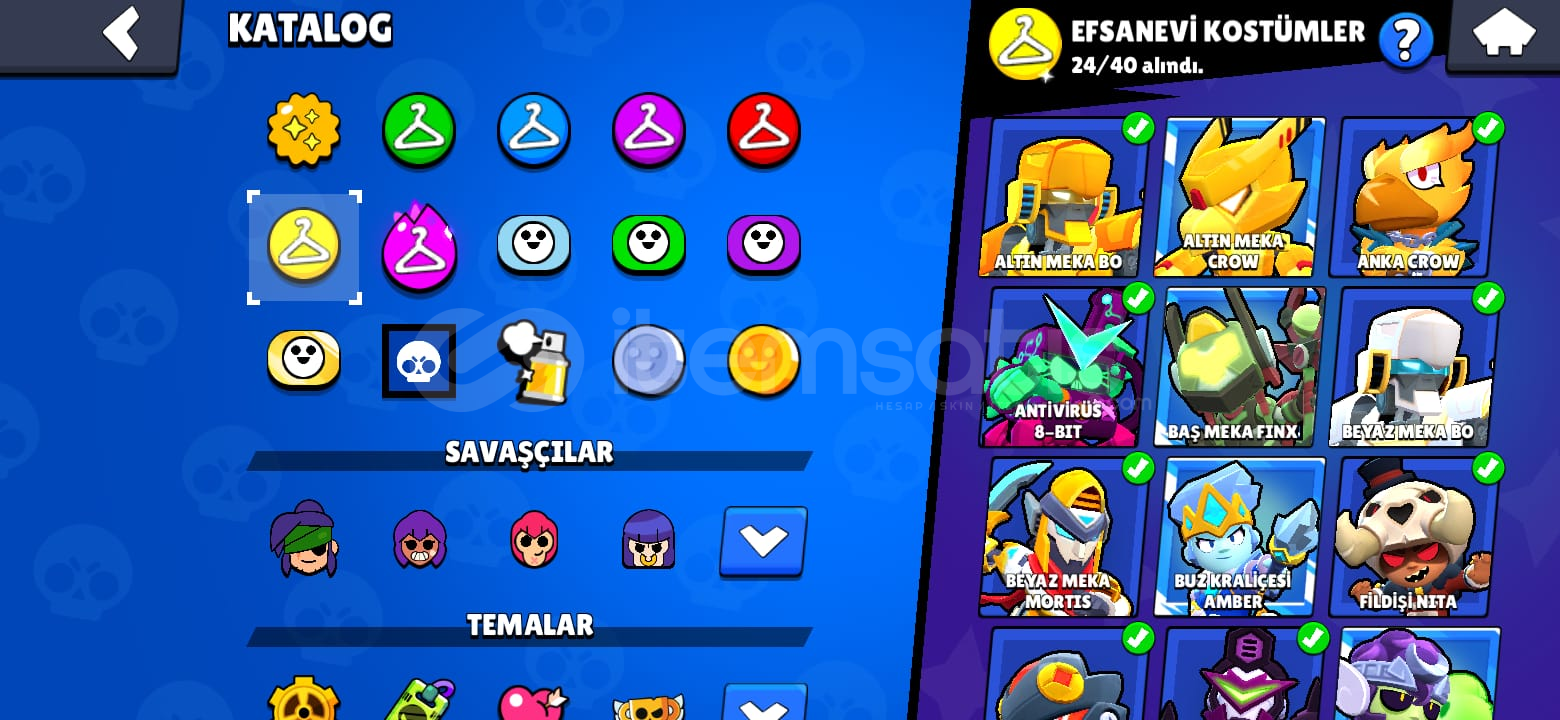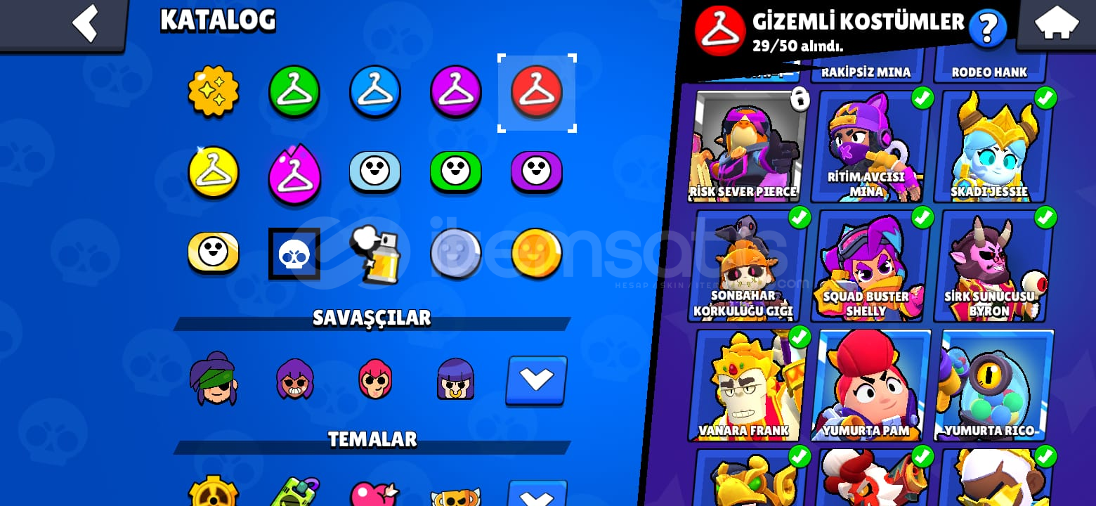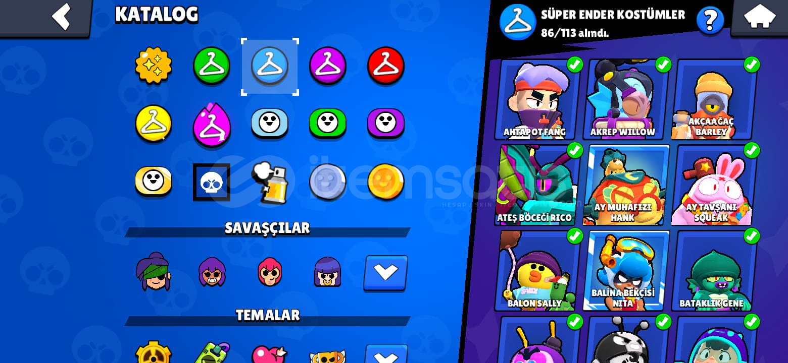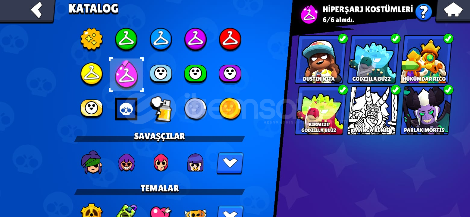 Hesapta 32 Adet Hiperşarjlı 11 Seviye Karakter vardır.-Hesapta 90 Ender-86 Süper Ender-163 Destansı-29 Gizemli-24 Efso-6 Hiperrşarj Kostümü Bulunmaktadır.