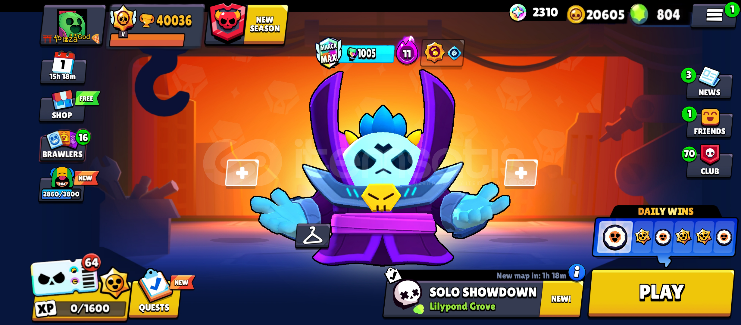 Hesapta Brawl Pas Plus Vardır 804 Elmas Var 20.605 Altın,Full Karakter Hepsi Hiperjarzlı