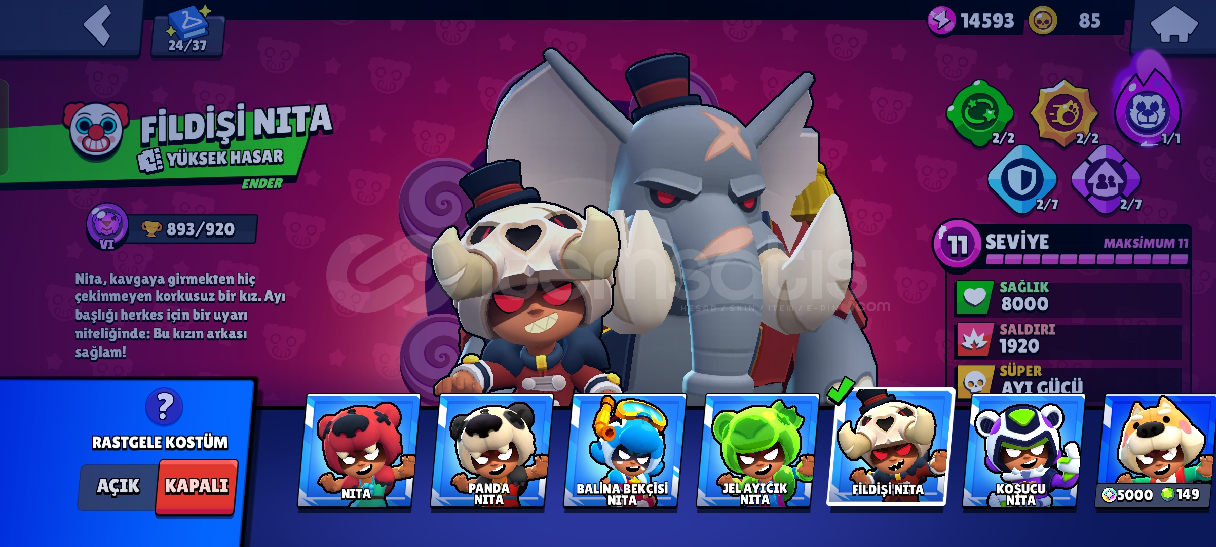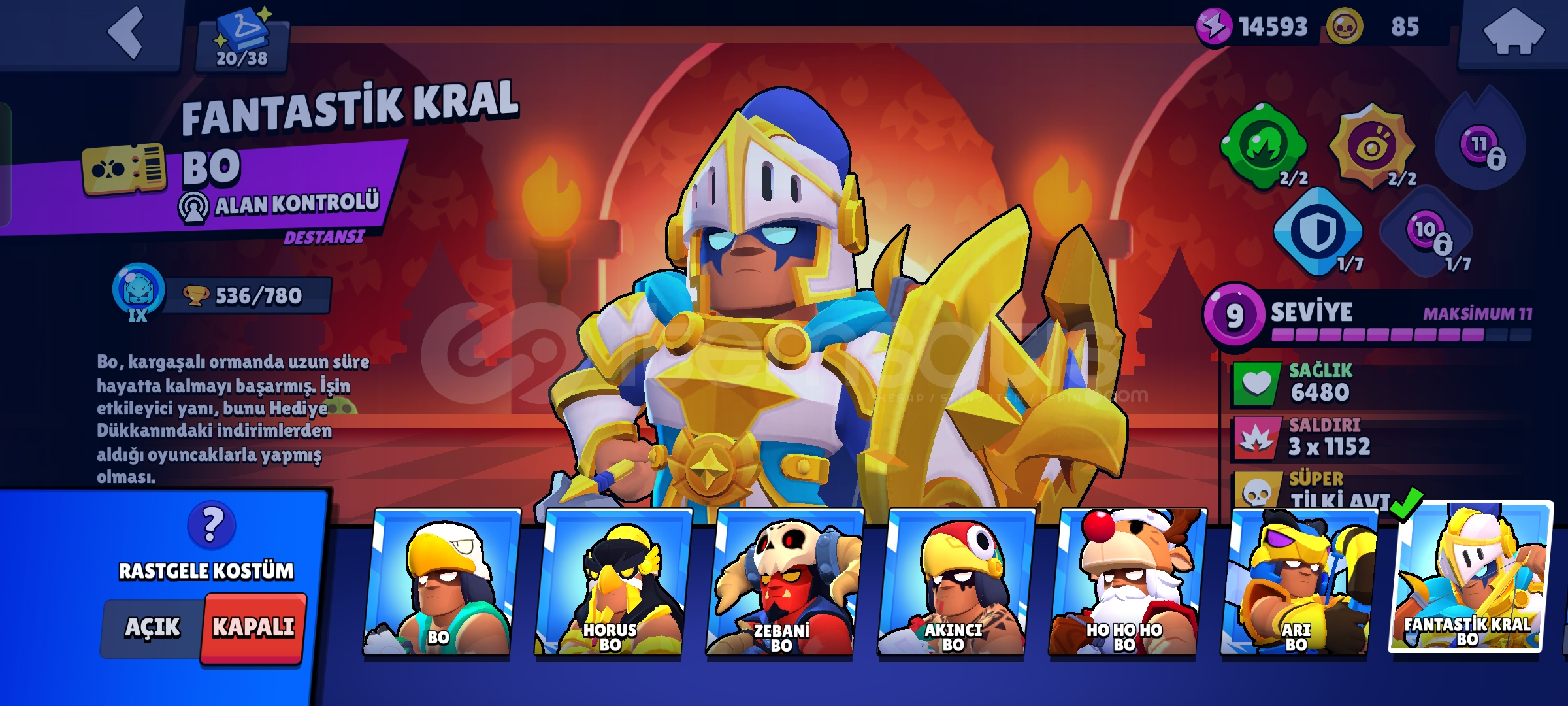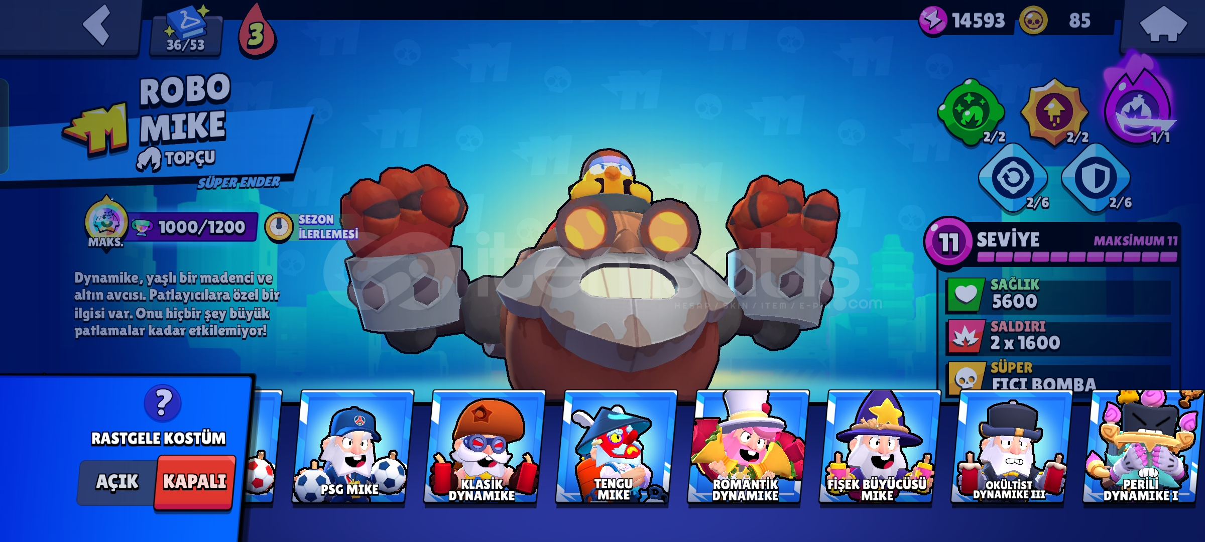 Hesap Gmail şifre ile teslim edilir (0 mail)20 karakter maximumdur 16'sında hiperşarj vardır.Birbirinden güzel 188 adet kostüm bulunmaktadır.