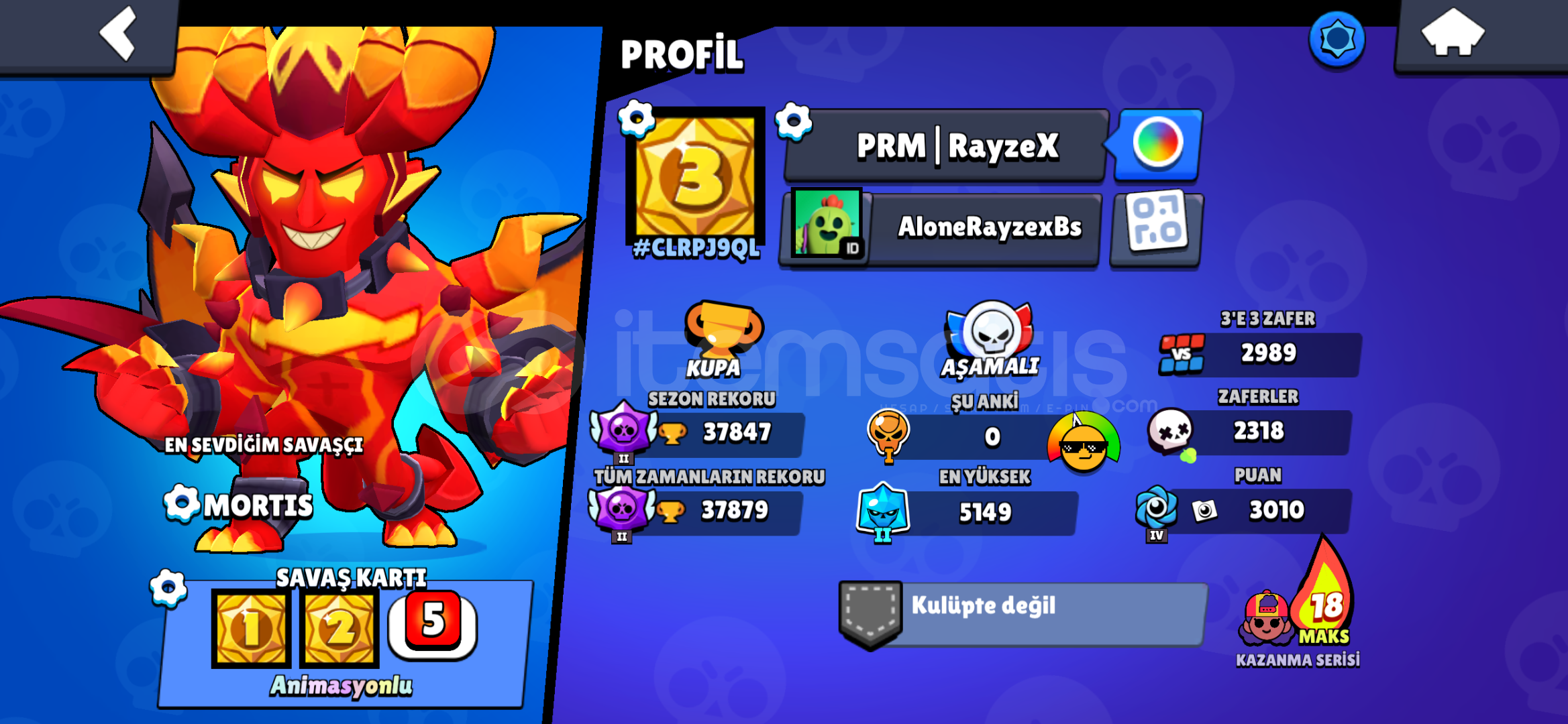 Hesapta birbirinden kaliteli 126 adet kostüm vardır ve 1 sezon Battle Pass+ alınmıştır.
