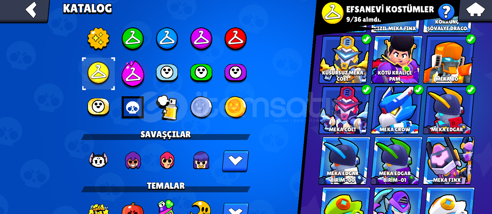 +215 SKİN MEVCUTTUR ( TURUNCU MECHA BO , MECHA CROW , CİZGİ ROMAN SPİKE , MECHA COLT , MECHA EDGAR V.B )
