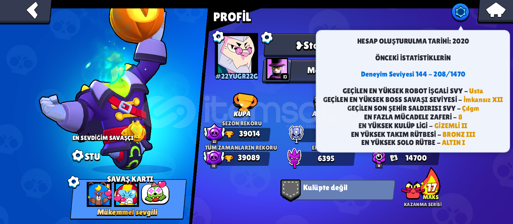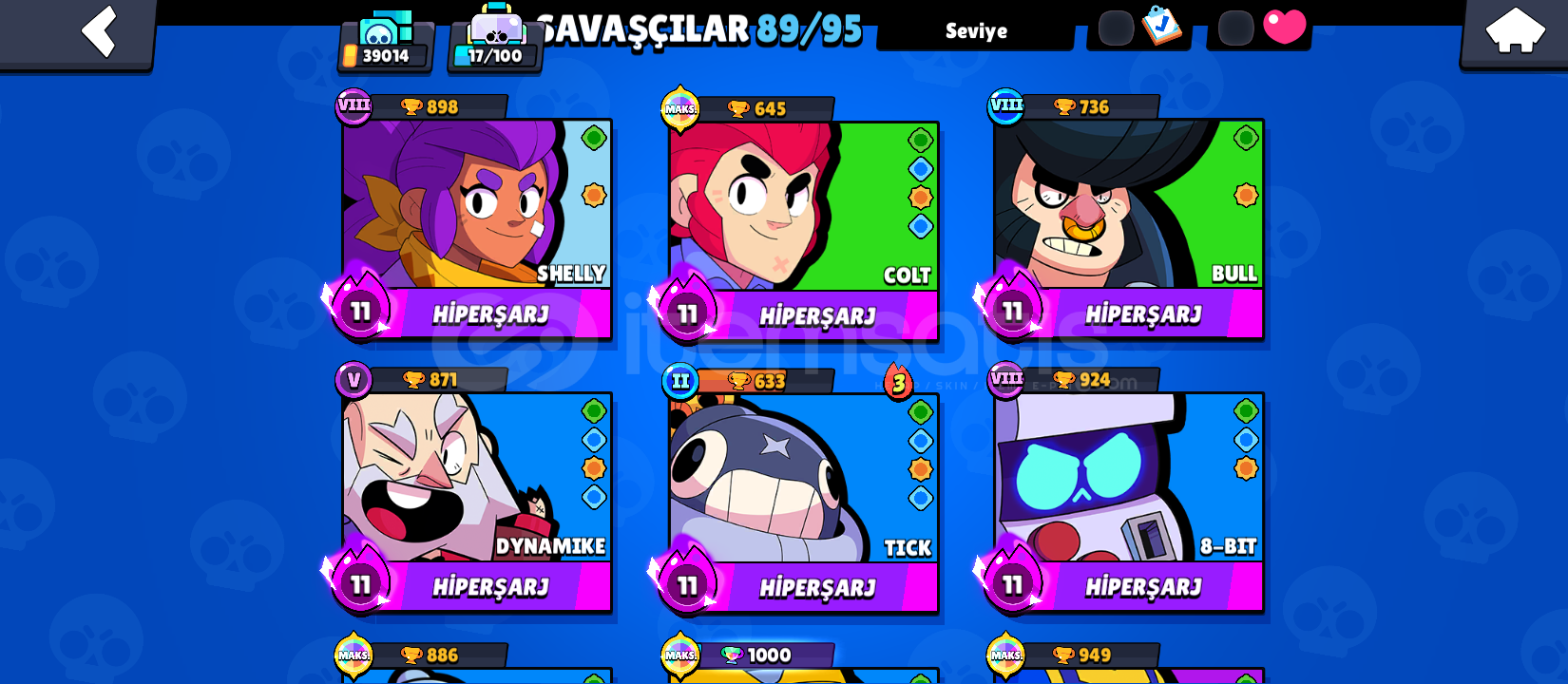 ÖNCELİKLE MERHABA 39.000 KUPA HESAPTIR 89 KARAKTER VARDIR (90. COK AZ VAR)40 TANE HİPERSARJ VARDIR ÇOĞU KARAKTERLER MAXTIR2020 KURULUMLU HESAPTIR +215 SKİN MEVCUTTUR ( TURUNCU MECHA BO , MECHA CROW , CİZGİ ROMAN SPİKE , MECHA COLT , MECHA EDGAR V.B )5 GÜMÜŞ 2 ALTIN SKİN VARDIR TÜM COLT SKİNLERİ VARDIR11 TANE ÜNVAN BULUNUR ( 3 TANE BP PLUS)!!!TESLİMAT!!!HESAP SİZE BOŞ MAİLE AKTARILMIŞ &...