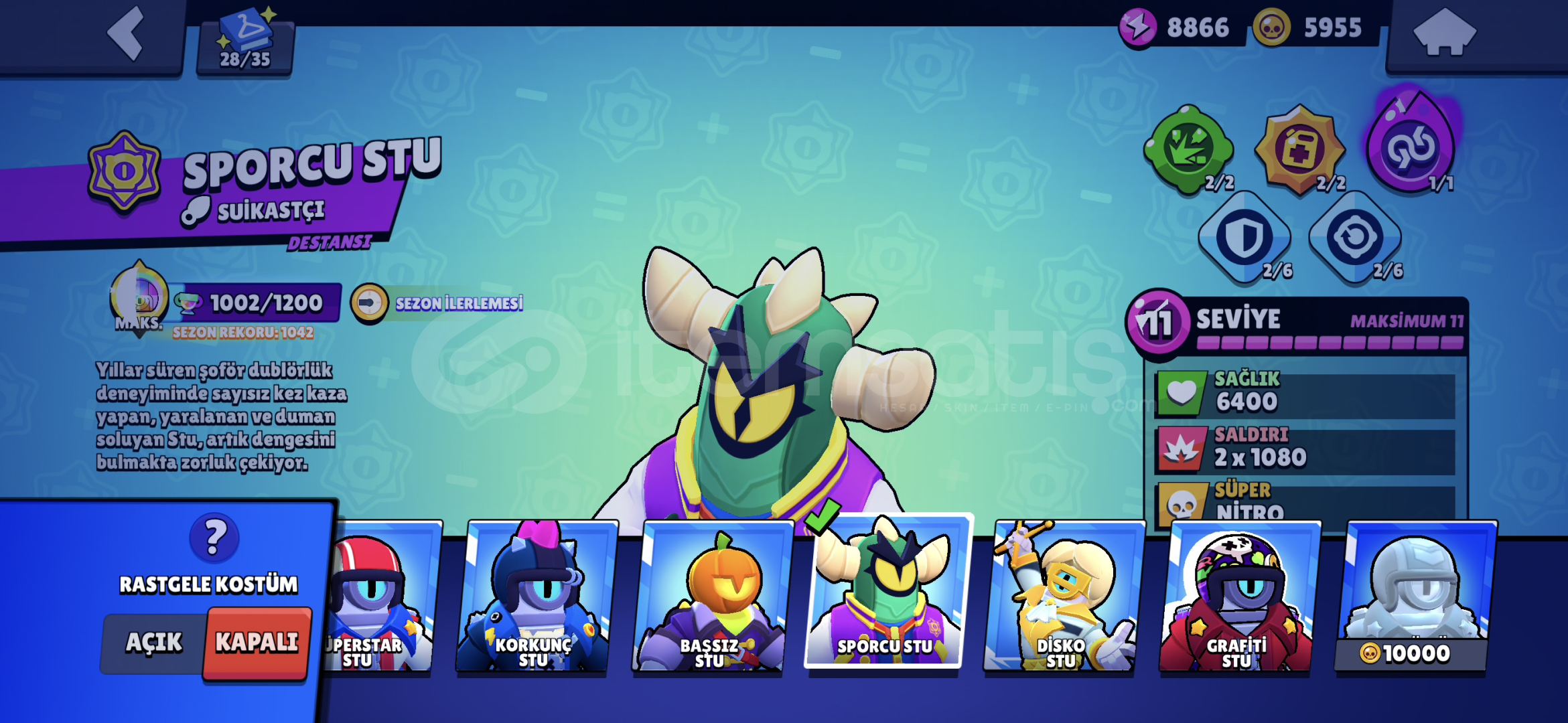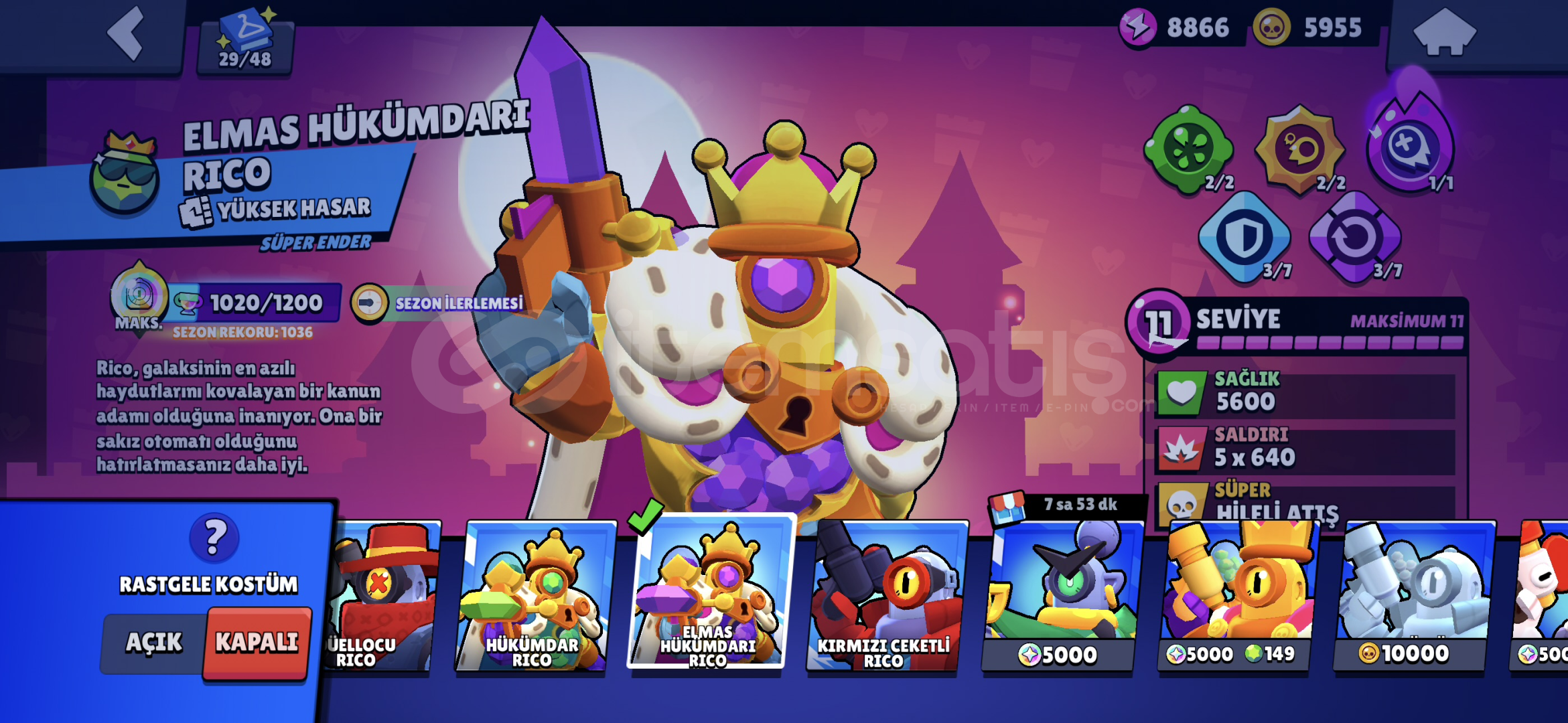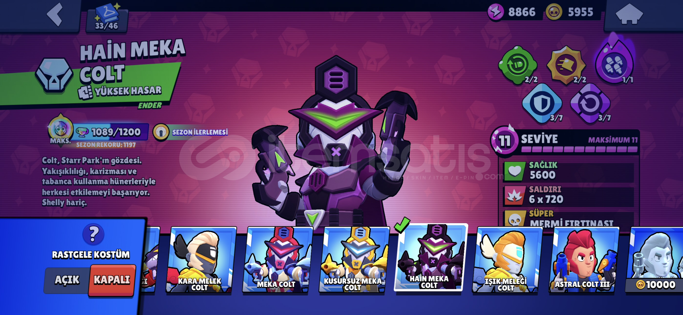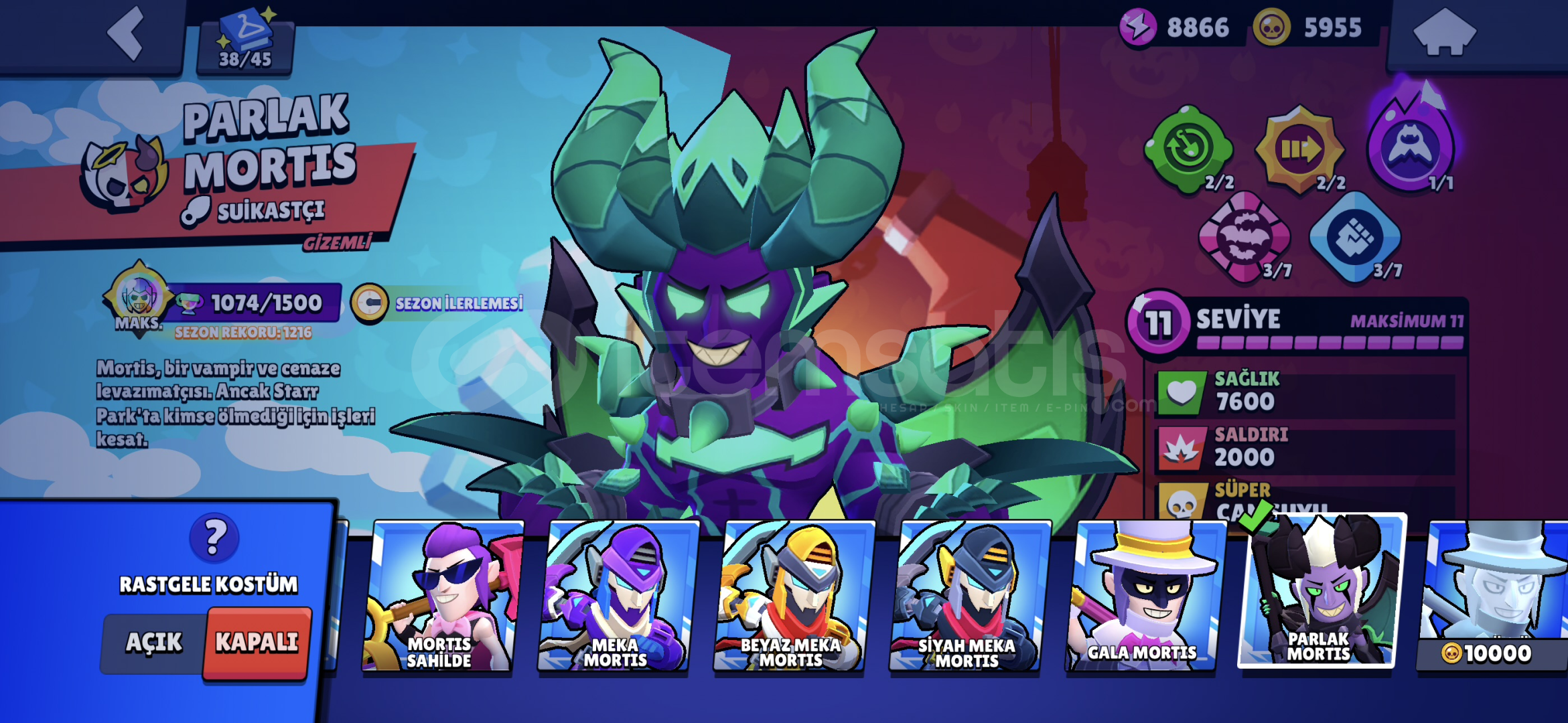 SPORCU STUMEKA COLTMEKA MORTİSROBO MİKEANTİVİRÜS 8BİTPARLAK MORTİSELMAS HÜKUMDARI RİCO 2X RENKGODİZLLA BUZZSİRK SUNUCUSU BYRONOYUNCU BİBİ30+11LEVEL KARAKTER15 MAX RÜTBE KARAKTERAŞAMALI RÜTBE EFSANEVİ
