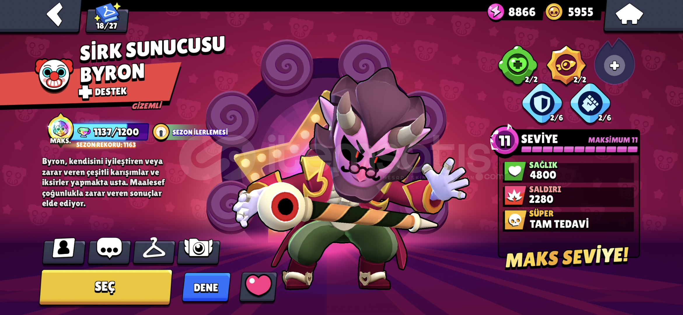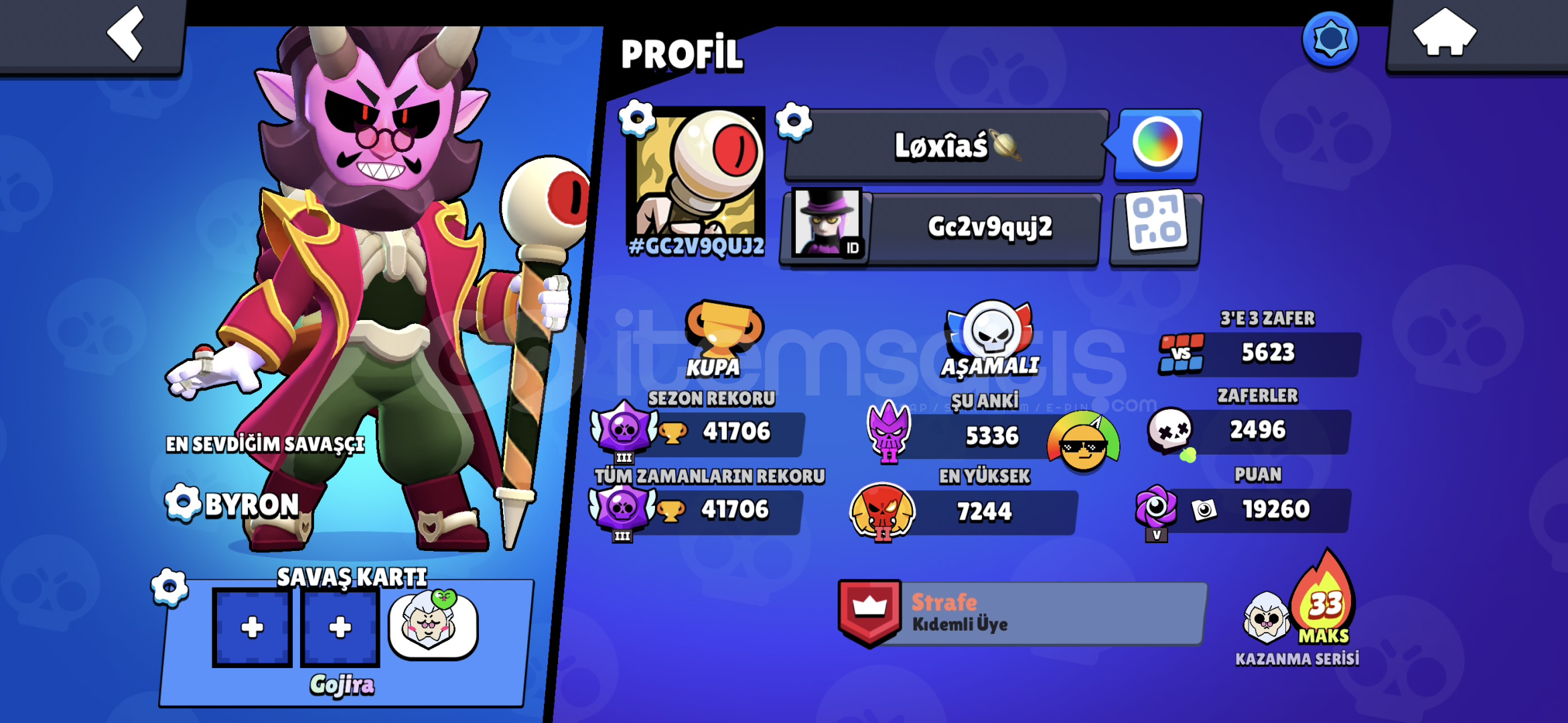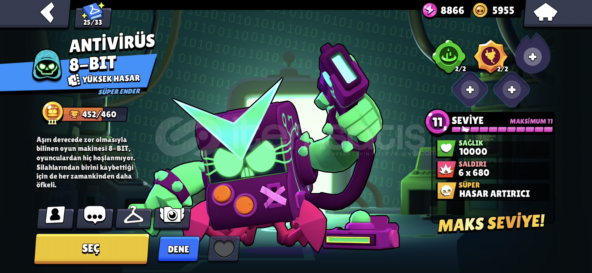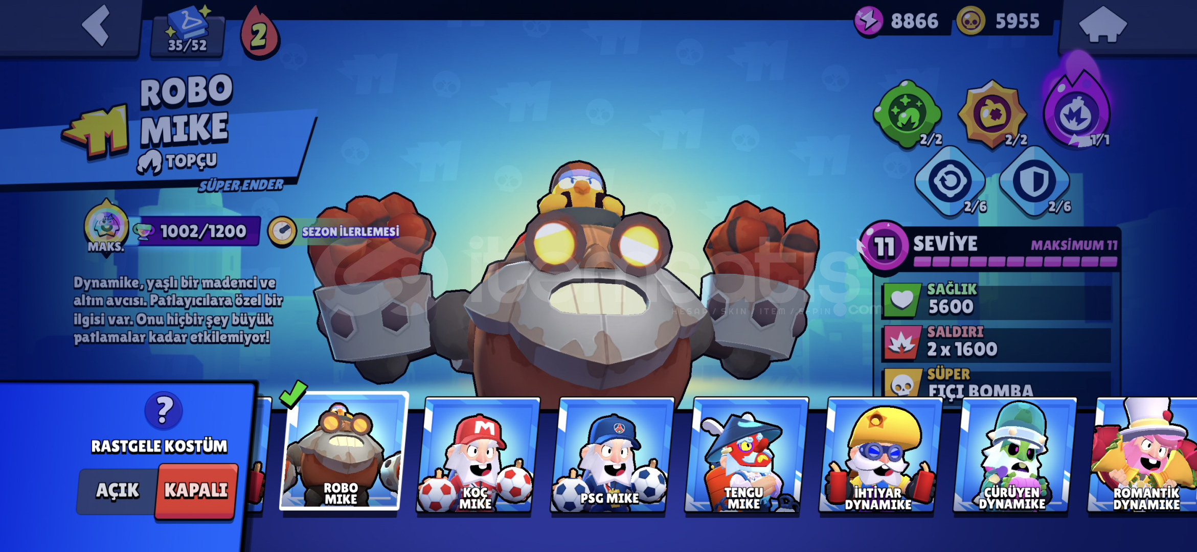 SPORCU STUMEKA COLTMEKA MORTİSROBO MİKEANTİVİRÜS 8BİTPARLAK MORTİSELMAS HÜKUMDARI RİCO 2X RENKGODİZLLA BUZZSİRK SUNUCUSU BYRONOYUNCU BİBİ30+11LEVEL KARAKTER15 MAX RÜTBE KARAKTERAŞAMALI RÜTBE EFSANEVİ