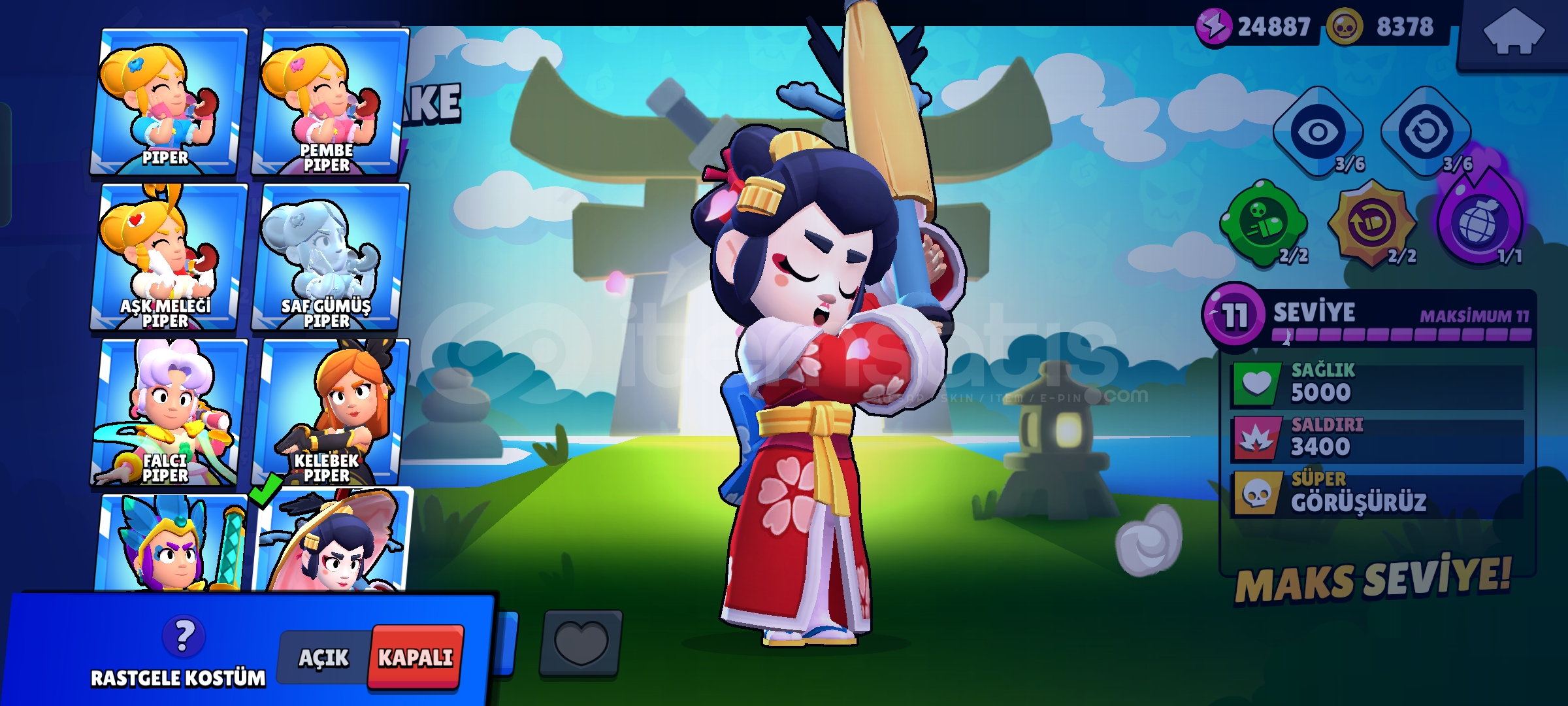 Hesap Gmail şifre ile teslim edilir hesap koruması aktif değildir.Hesapta 92 adet karakter vardır 21 I maxtir.Hesapta birbirinden güzel 247 kostüm vardır.Alana şimdiden hayırlı olsun.