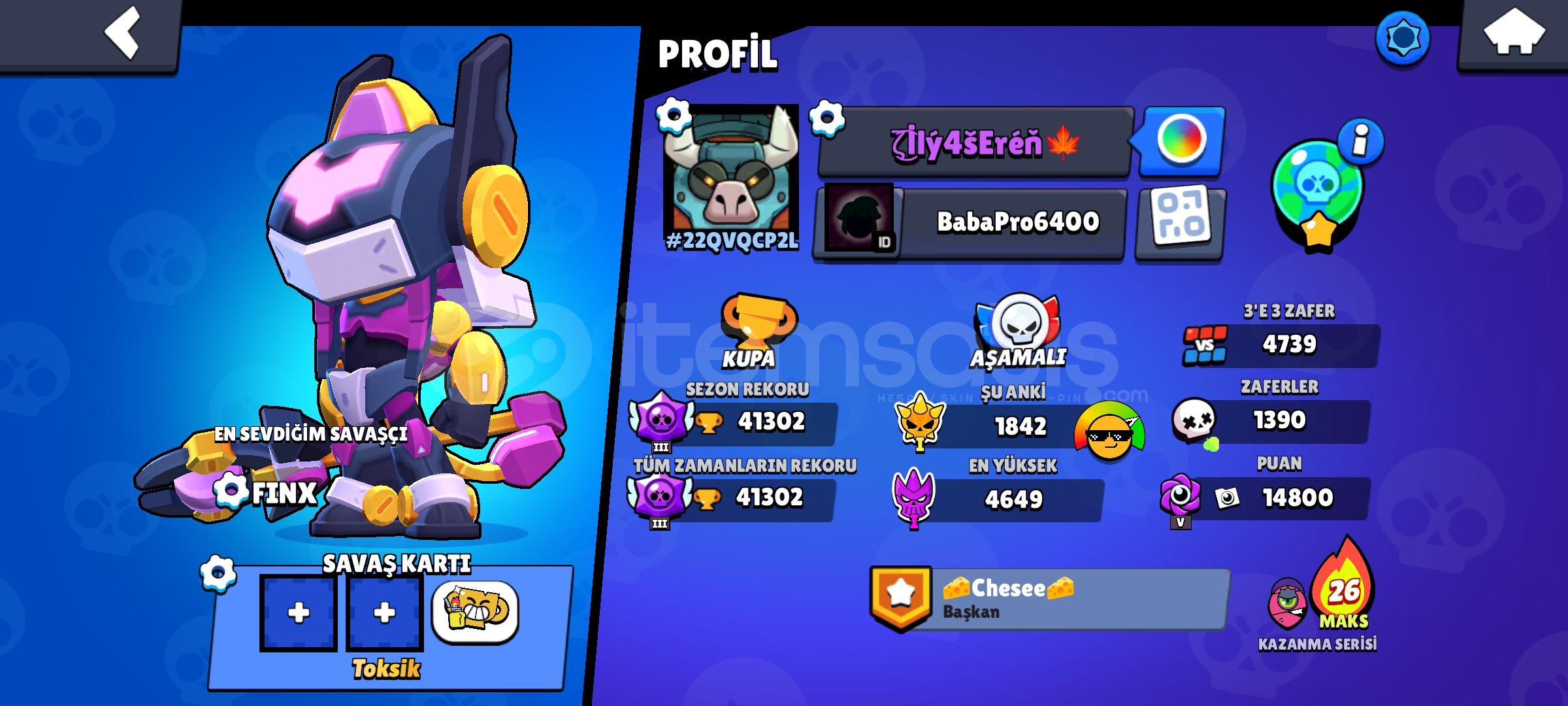 Kendi ana hesabım mecbur kaldıgım için satıyorum kesinlukle emek hesabı ucuza veriyorum pazarlık payı vardır içinde değerli kostümler ve nadir kostümler var Ayrica 12.Seviye Belediye binalı clash of clans hesabı vardır ve 4300 kupalı clash Royale ve.Bsde 1.5 milyon kulüp başkanı.7-8 tane ünvan vardır
