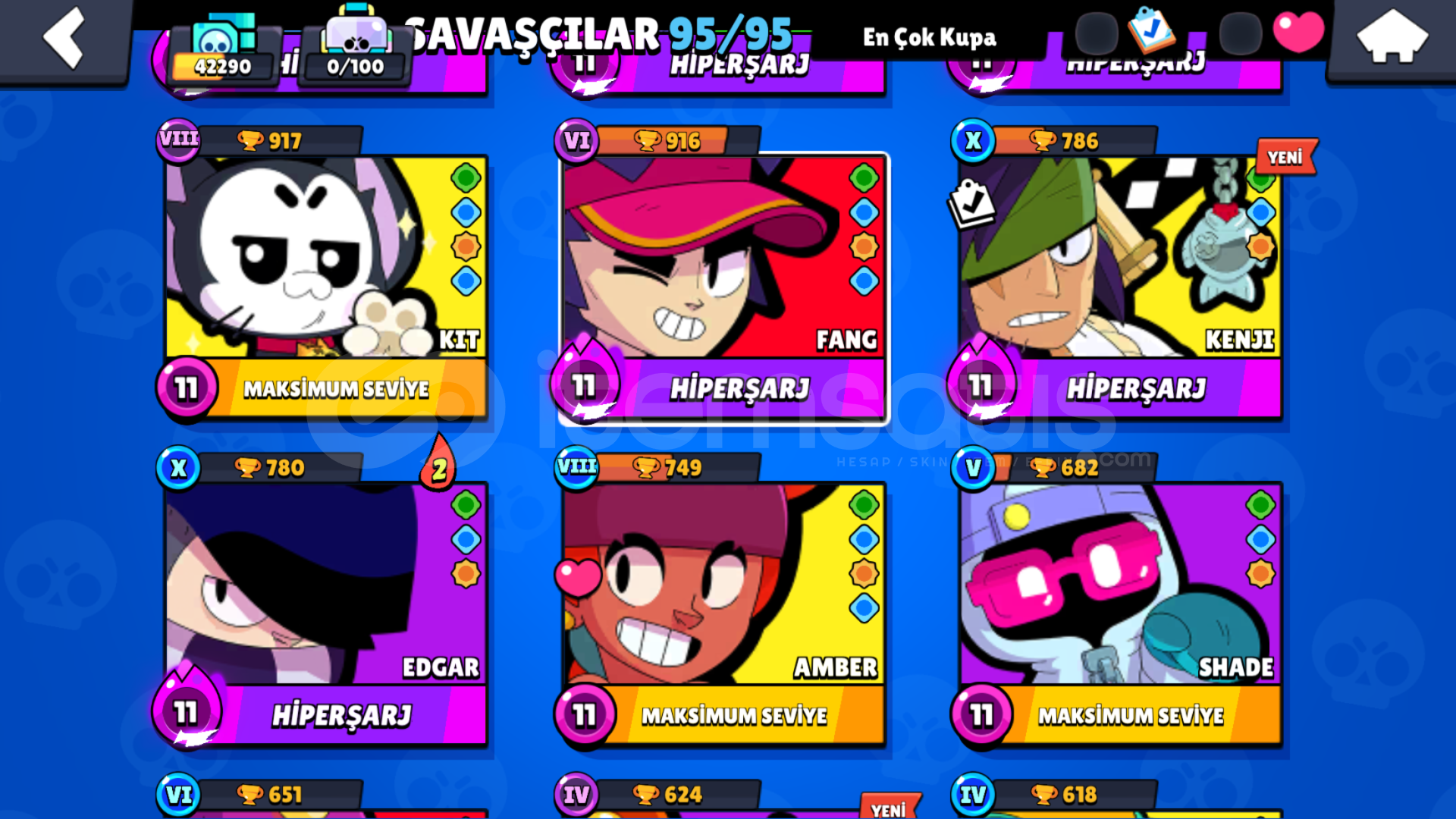 ⚡️ 42.200 Kupa⚡️ 95 Karakter⚡️ 42k Mücevher⚡️ 170 elmas⚡️ Çok Fazla SkinV...