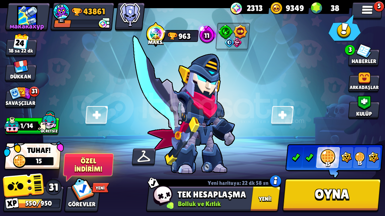 HESAP ID: #2J9L9U8VY11 Hiperşarjlı, Toplam 15 Maksimum Seviye68 Ender Skin68 Süper Ender Skin66 Destansı Skin5 Gizemli Skin4 Efsanevi Skin5 Hiperşarj SkinMail ve şifre olarak teslim edilecektir. Aldıktan sonra şifreyi değişiniz.Hesapta sizden başka kimse bulunmaz, bulunamaz. Otomatik teslimattır. Soru sormadan direkt alabilirsiniz.