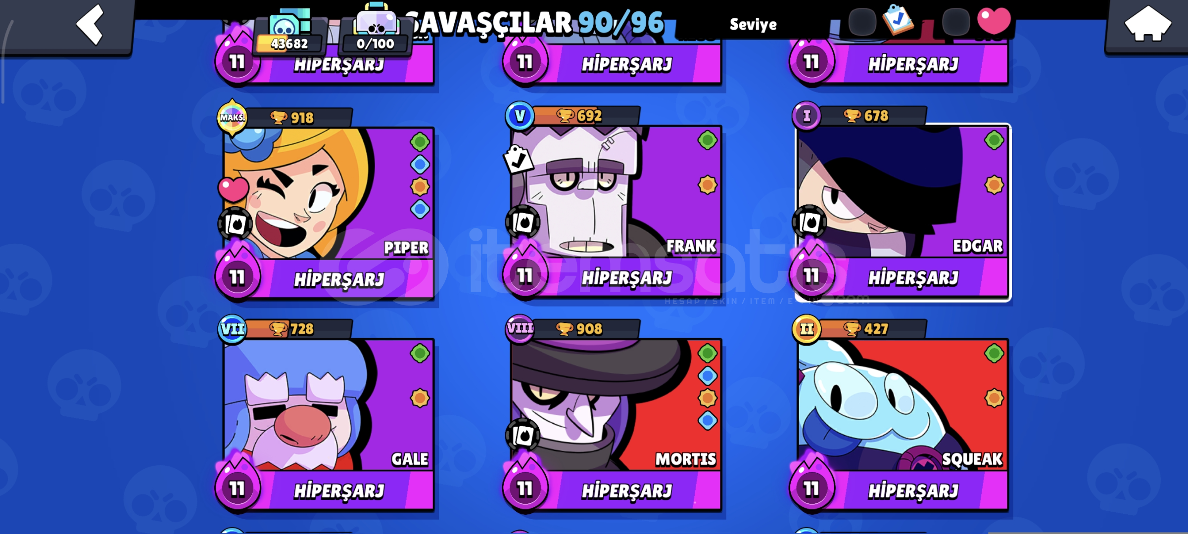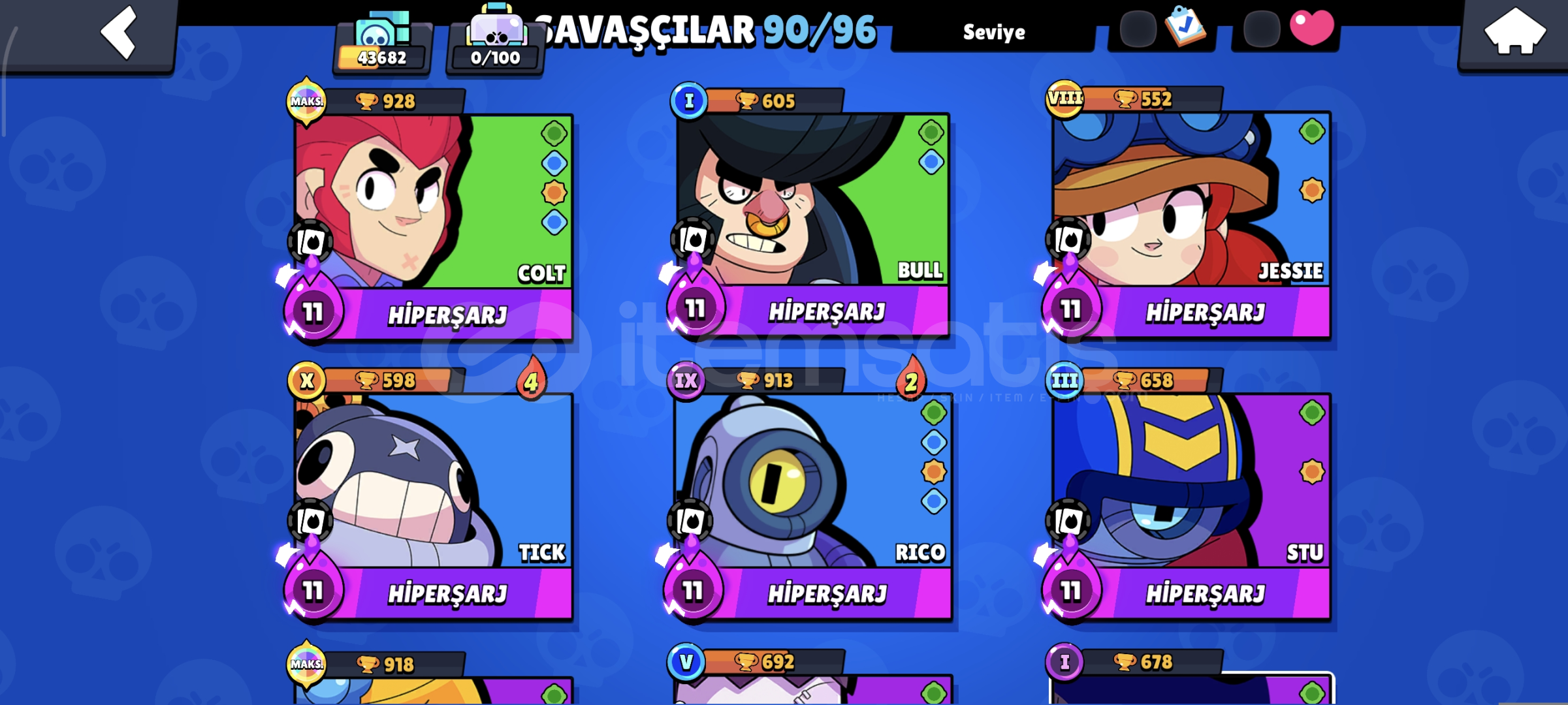 ⚡43K KUPADIR HESAP⚡✨2 BRAWL PASS AÇILMIŞTIR✨⭐90 ADET KARAKTER VARDIR⭐⭐16 ADET FULL SEVİYE KARAKTER VARDIR⭐⭐185+ KOSTÜM BULUNMAKTADIR⭐⭐13 ADET HİPERŞARJ BULUNMAKTADIR⭐⭐E POSTAYI SİZE VERİYORUZ⭐⭐ŞİMDİDEN HAYIRLI OLSUN⭐