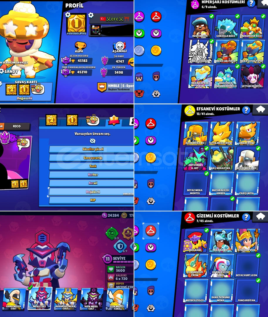 Hesap fotolarda var zaten 2019 hesabıdır 7k 3v3 vardir hesapta 275 kostüm var tam koleksiyon hesabi DÜNYA ŞÖHRETİD&...