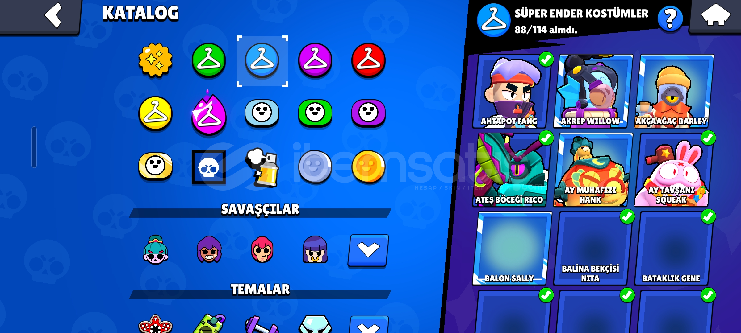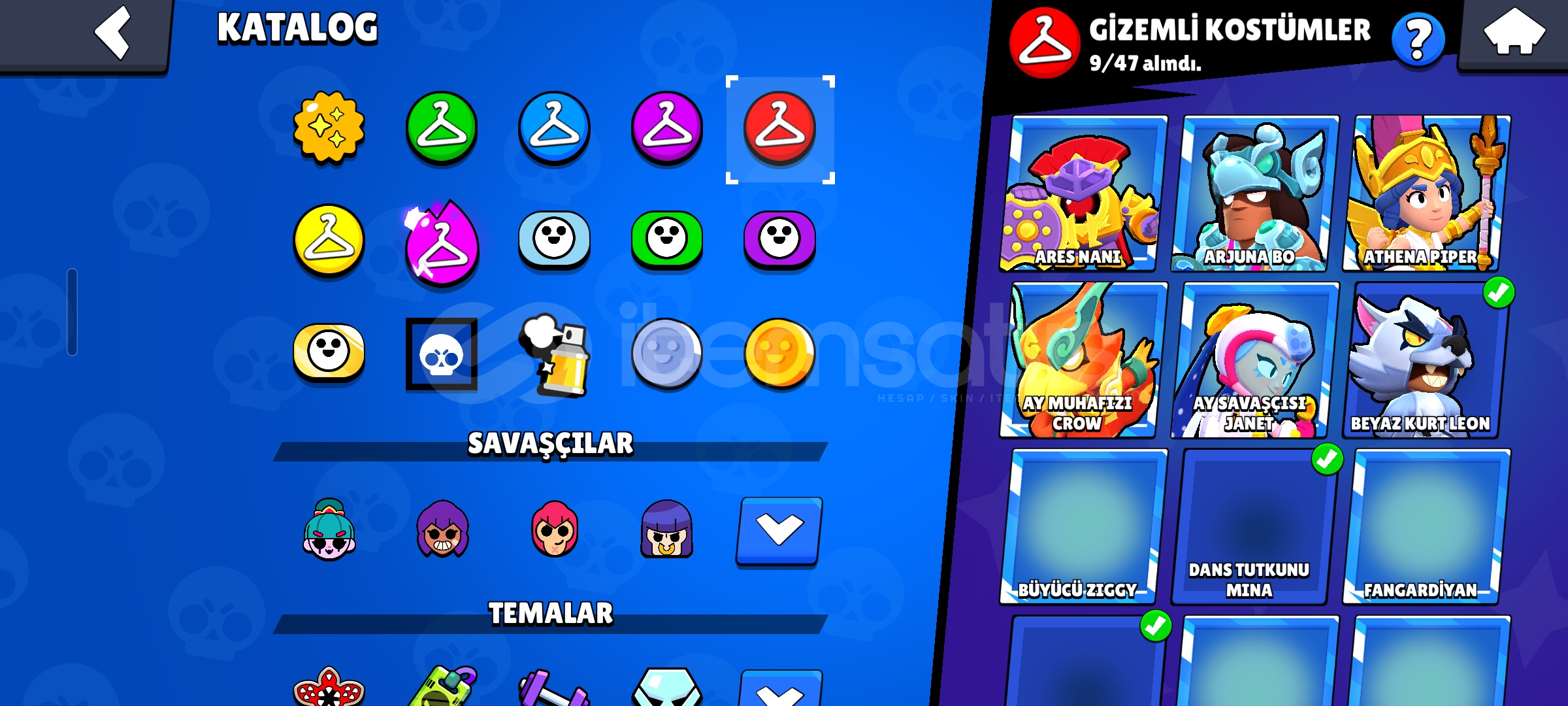 45k180 taş10k mücevher 40 karakter 11 level MAX7 den fazla brawl passx plusx alınmıştır 300 den fazla kostüm MARS SOHBETİ 18 hipersarj kostüm