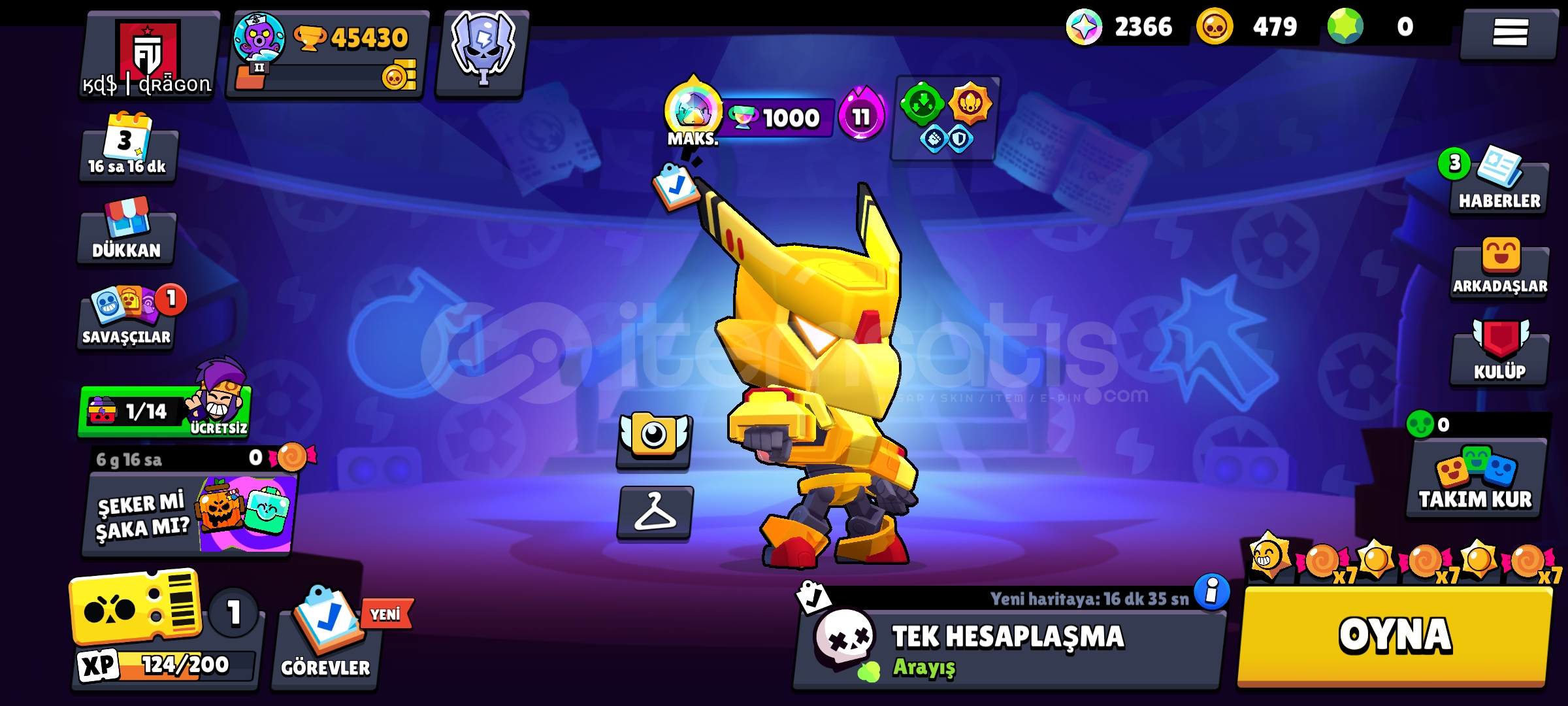 16 tane 1k karekter20 den fazla hiperjarz 12 tanesi açık toplamda 25 karekter Max5 tane efsanevi kostüm4 tane gizemli 51 tane destans...