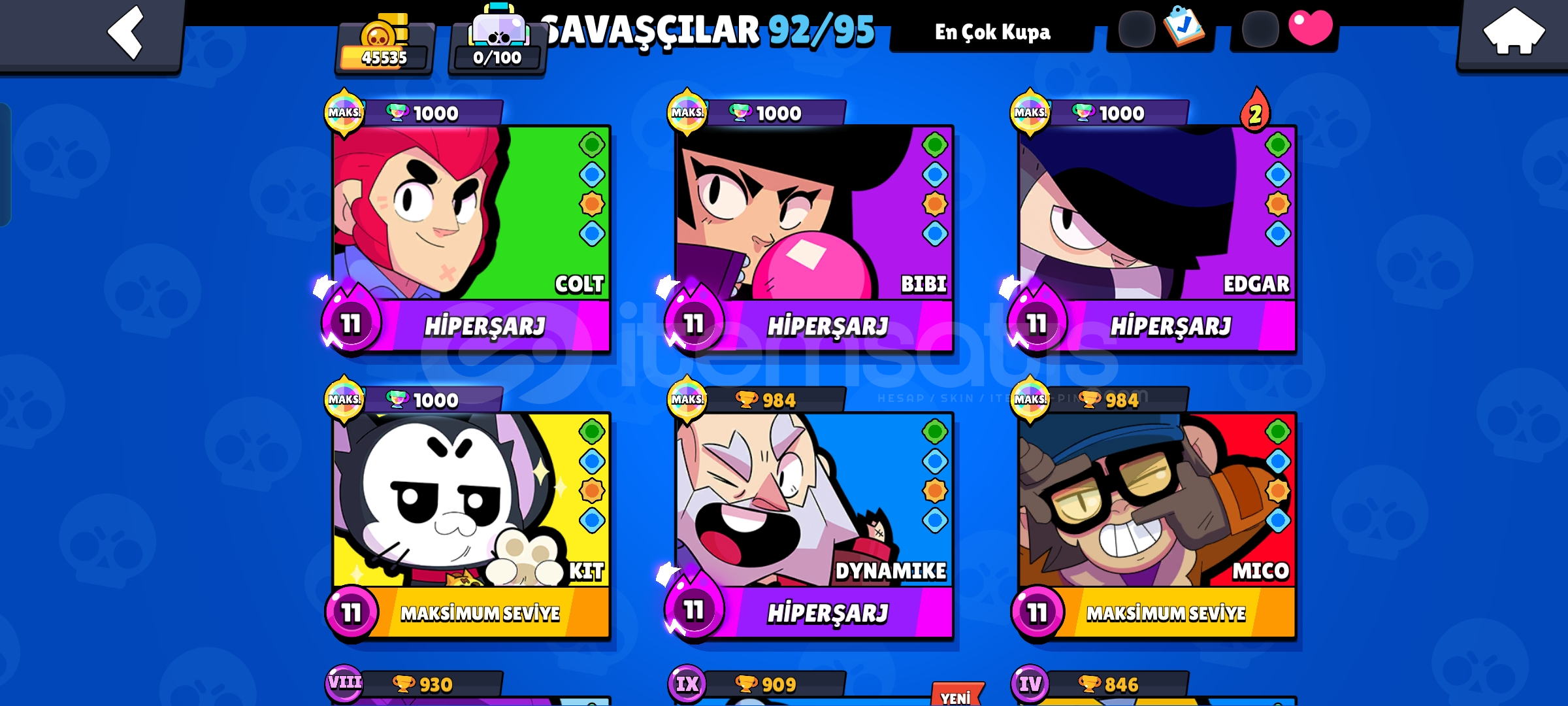 ⭐Sağlam Ve güzel Kaçmaz Hesap!⭐Bol kostüm sevenlere özel!⭐91 Savaşçı mevcuttur⭐Hesap dünya şöhreti 2 görmüştür⭐Hesap nadir 2021 hesabıdır herşey nadirdir hesapta!⭐5 Kere brawl pass pls açılmıştır!⭐Hesaba toplamda 4000 taşı geçik taş yatırılmıştır buda (7000 tl geçikti...