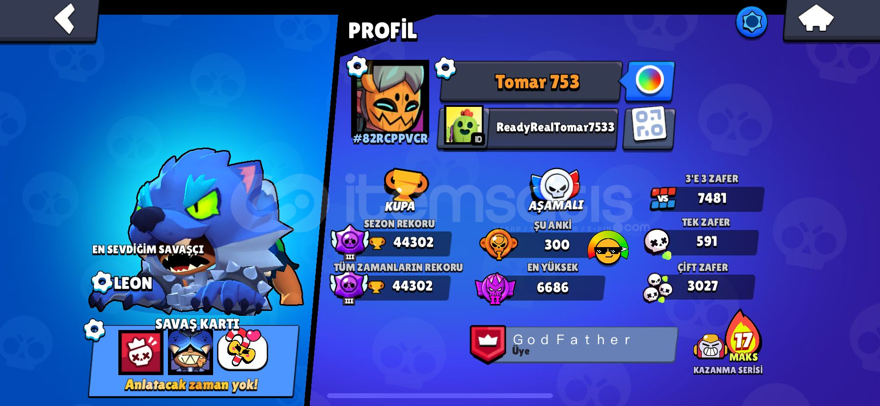 Mail değişimi yapılacaktırHesapta ek olarak zebani bo ile choco piper alınmıştır elmas kalmadı :DSporcu stu'da mevcuttur!!!Hesap aşamalı elmas 388 karakter vardır ve çoğunda skin vardır4 adet brawl pass açılmıştır18 karakter 1000 kupadır düşük kupalı karakter çoktur draco ve amber yoktur onun harici bütün karakterler mevcutturDaha sayamadığ&#...