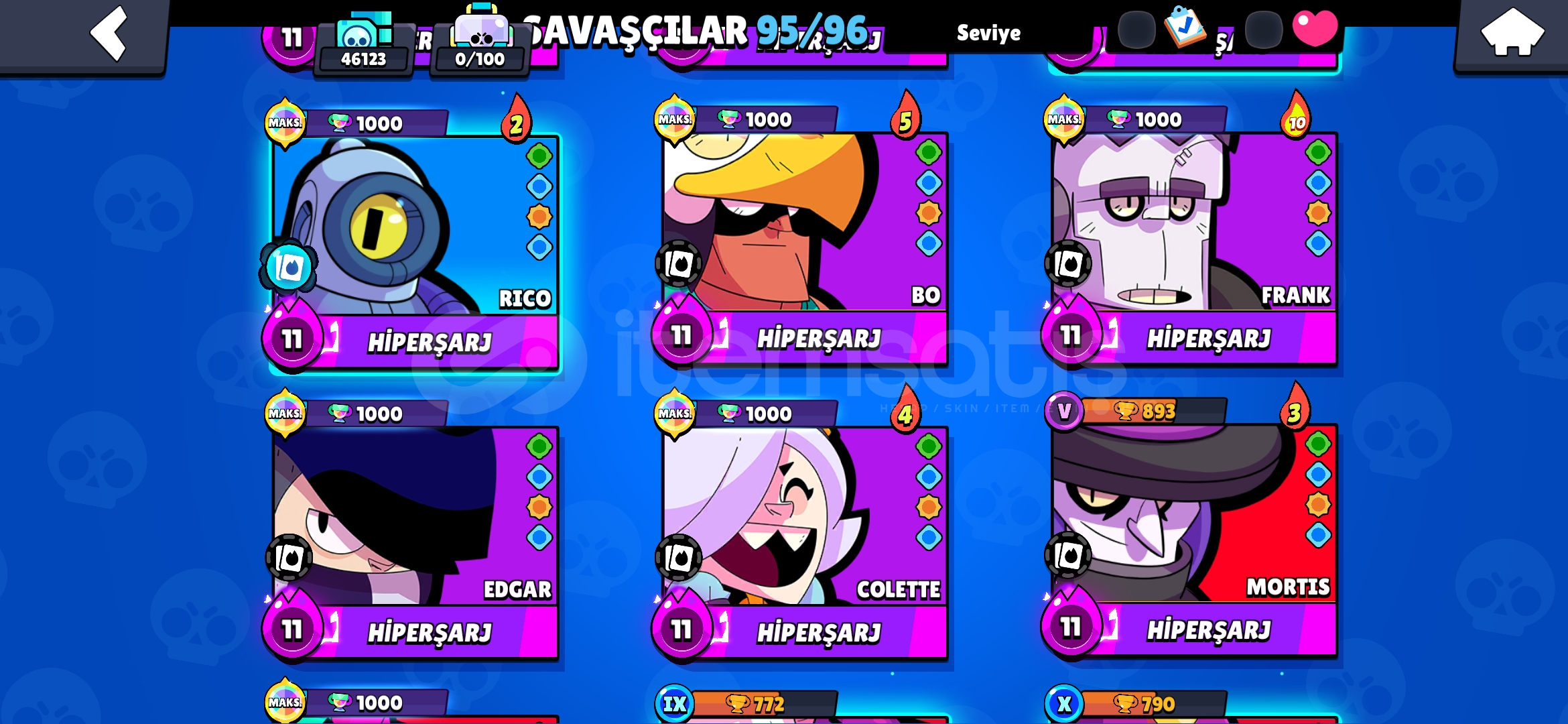 46 BİN KUPA⚡️260+SKINLI HESAP 11 ÖZEL ÜNVAN BULUNUYOR⚡️88 DESTANSI SKINLI 95 KARAKTER VARDIR⚡️24 MAX 19 HİPERŞARJ KARAKTER