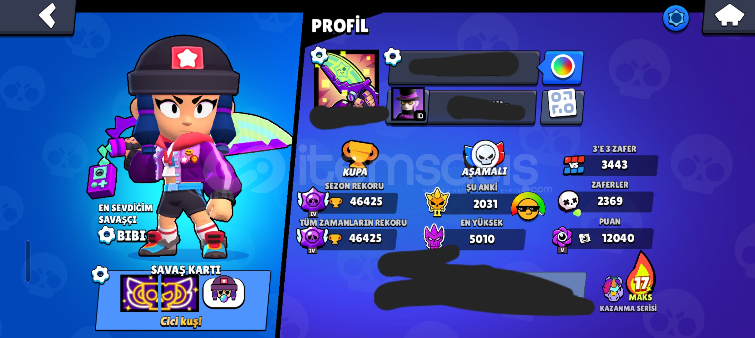 HESAPTA:46K KUPA200 SKİN(ÇOĞU NADİR VE BİR DAHA GELMİYECEK SKİNLER)70 ENDER SKİN76 SÜPER ENDER SKİN52 TANE DESTANSI SKİN4 TANE GİZEMLİ SKİN3 TANE EFSANEVI SKİN1 TANE HİPERŞARJ SKİN1 TANE SAF GÜMÜŞ SKİN1 TANE SAF ALTIN SKİN83 KARAKTER13 TANE 1K KUPALI12 TANE 11 LVL 2 TANE 10 LVL16 TANE 9 LVL KARAKTERLER VARDIR33 TANE HİPERŞARJ VARDİR 9 TANESİ 11LVL OLAN KULLANIL...