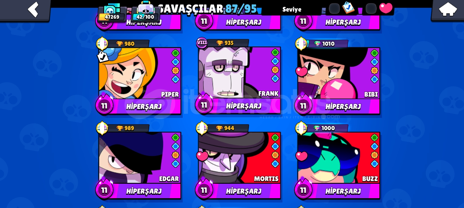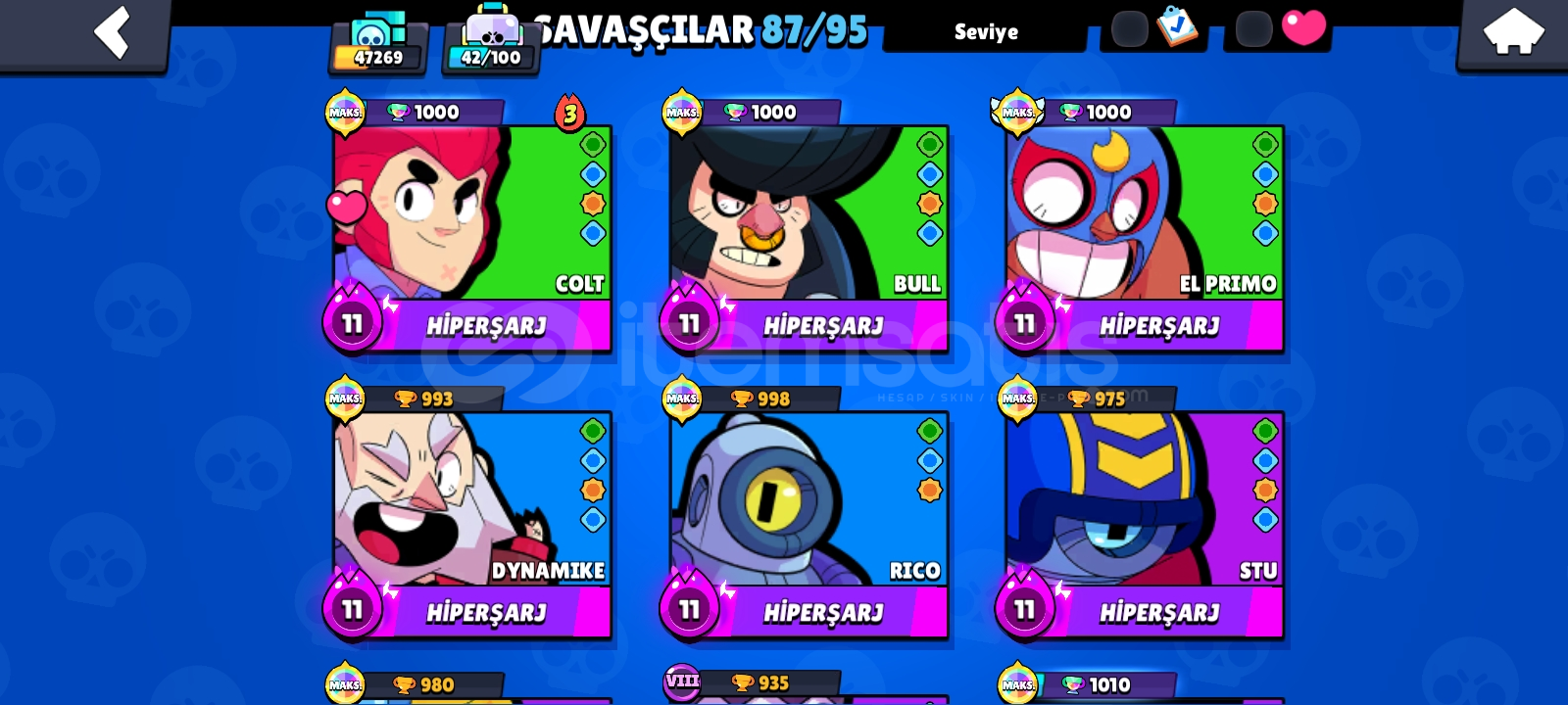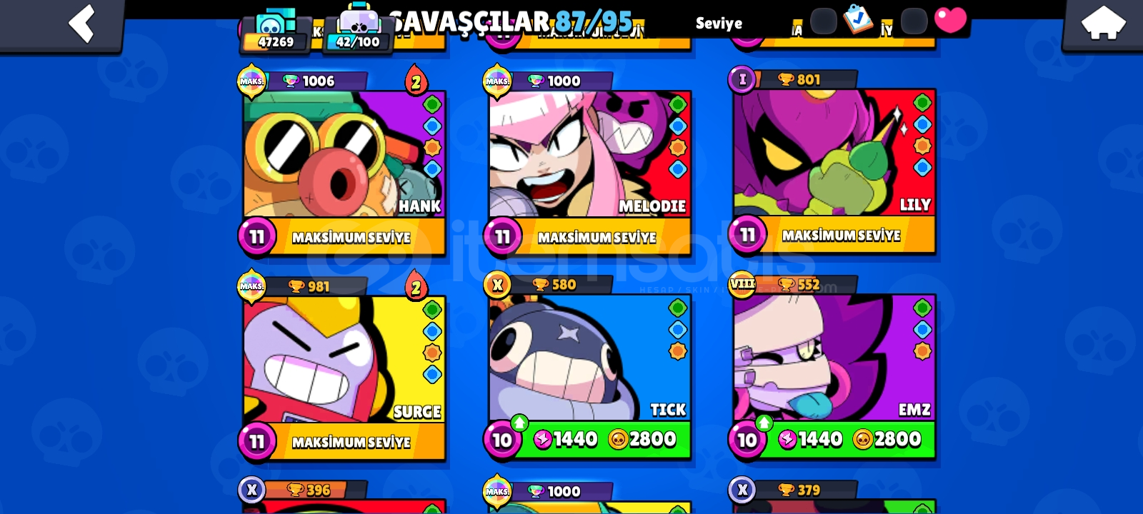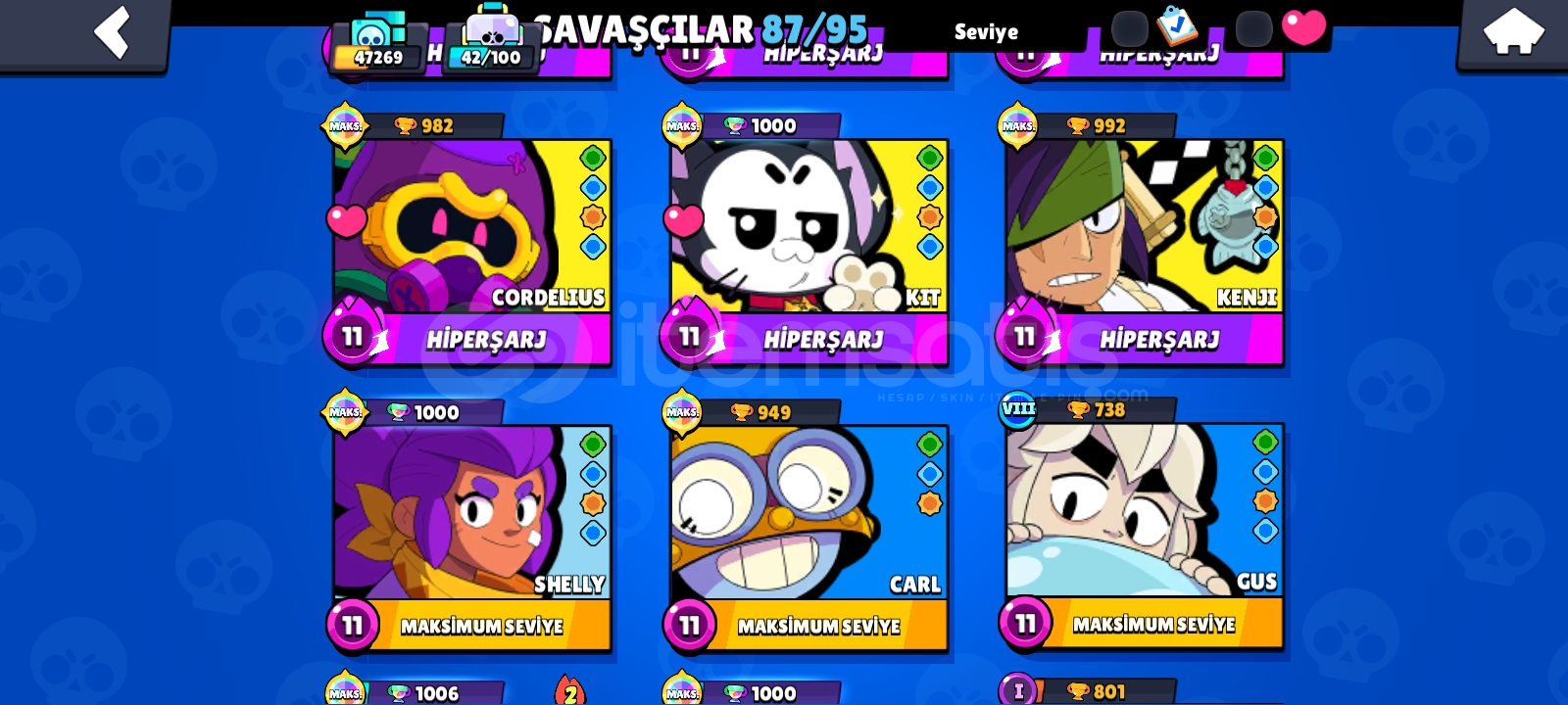 47 BİN KUPA⚡87 KARAKTER VAR 22 MAX 15 HPERŞARJ KARAKTER 190+KOSTÜM VAR⚡10 ÖZEL ÜNVAN⚡
