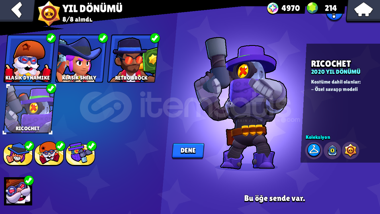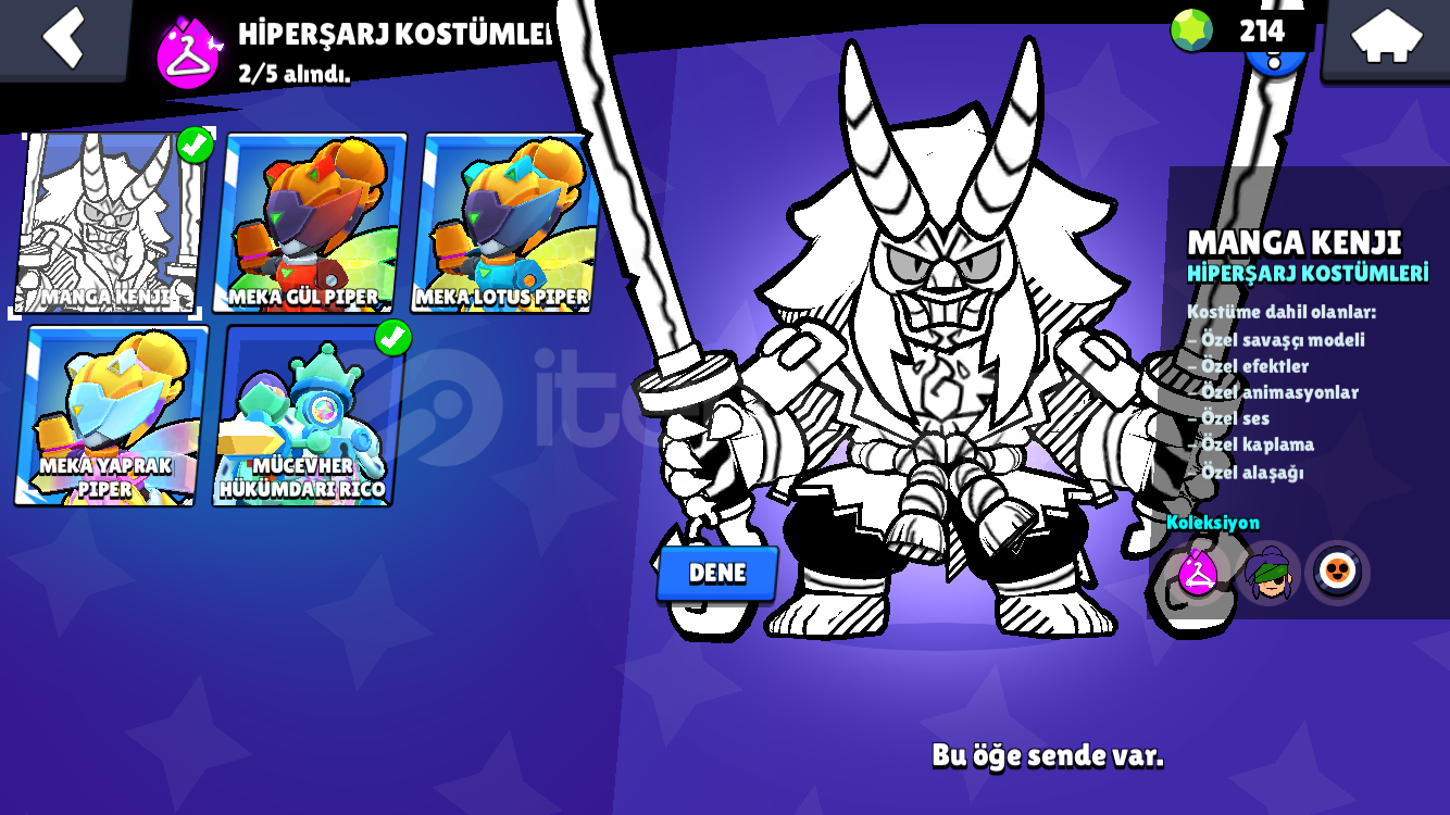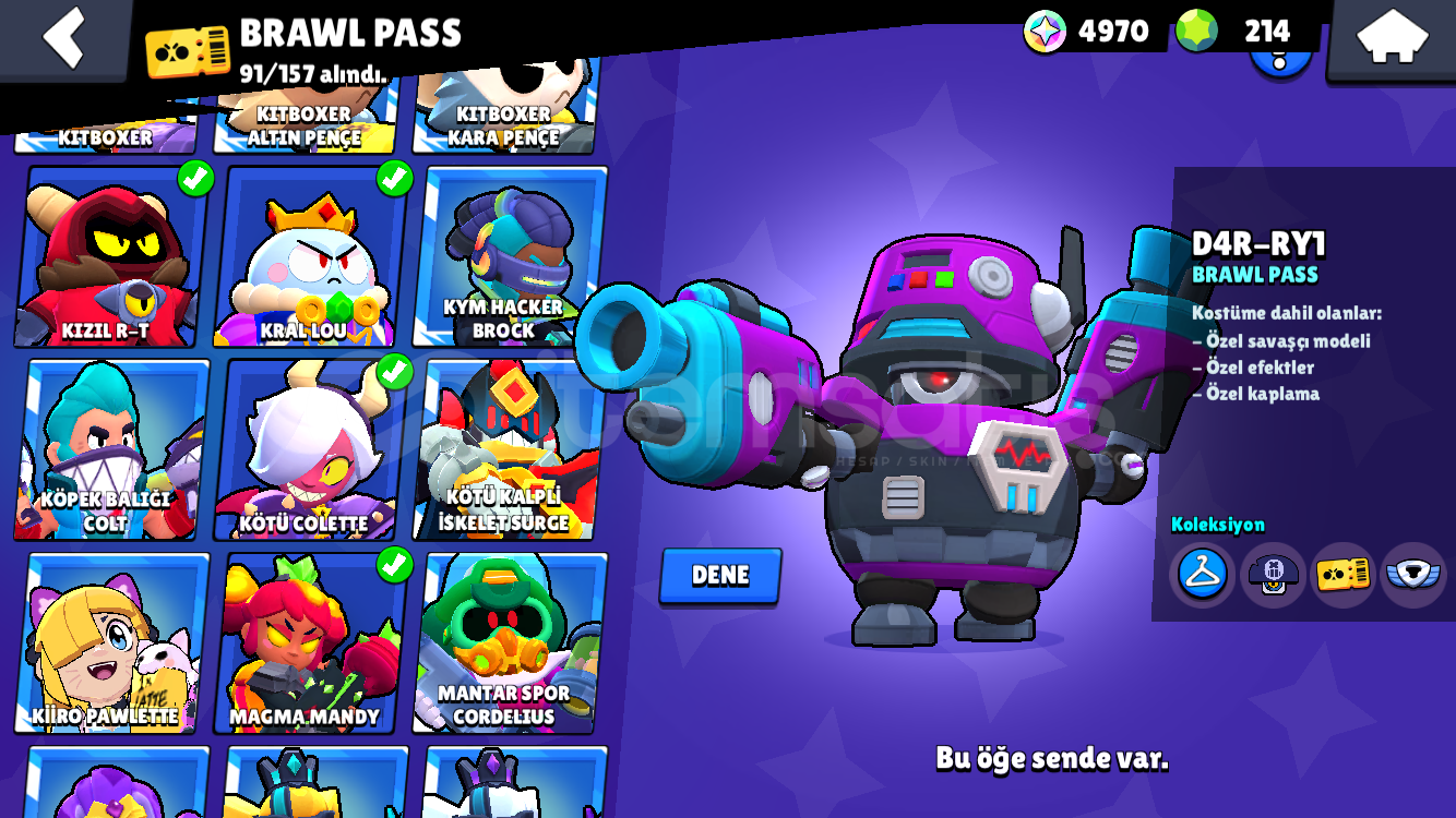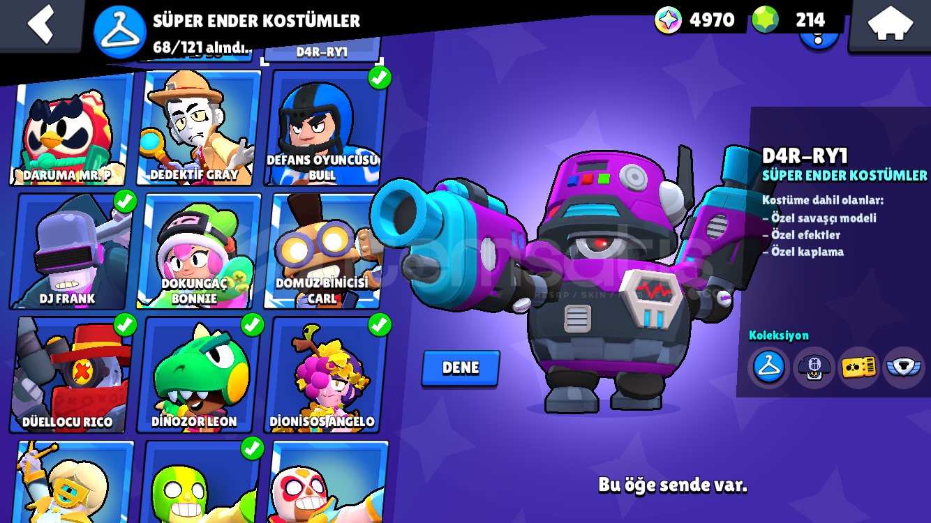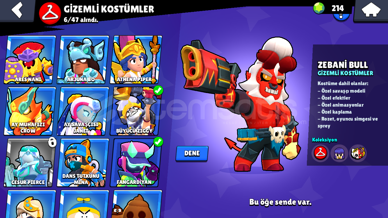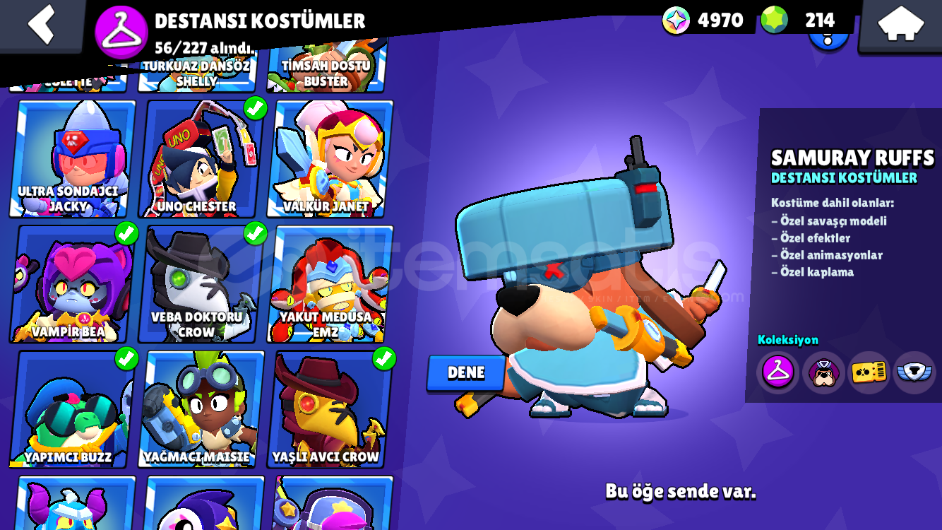 NADİR KOSTÜMLER; KLASİK SHELLY, PSG SHELLY,ŞERİF SHELLY, RETRO BROCK, KIRMIZI EJDERHA JESSY, KORSAN COLT, RİCOCHET, KLASİK MİKE, PSG MİKE, MEGA KUTU DARRYL,