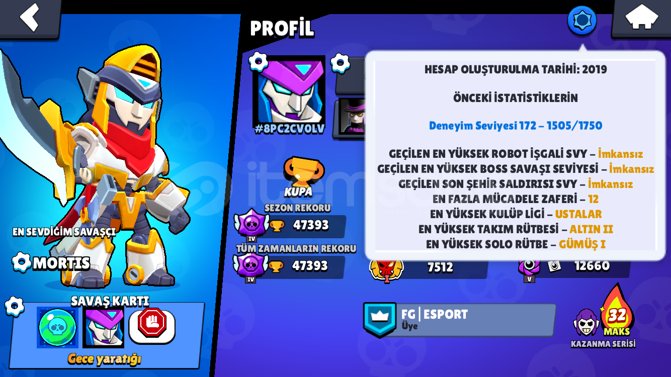 2019 HESABI, 172 DENEYİM SEVİYESİ, OYUNCU İD'Sİ DEĞİŞİLEBİLİYOR, EPOSTA DEĞİŞİLİYOR, HESAP KORUMASI YOKTUR TELEFON NUMARASI VS. BAĞLI DEĞİL YANİ... AŞAMALI; ALTIN 1 .HESAPTA BÜTÜN KARAKTERLER MEVCUTTUR, 47.300KUPADIR, 18.600 ALTIN, 215 ELMAS, 26.000 GÜÇ PUANI, 5000 MÜCEVHER MEVCUTTUR, AY ŞÖHRETİ 2KOSTÜMLER;2 HİPERŞARJ, 14 EFSANEVİ,...