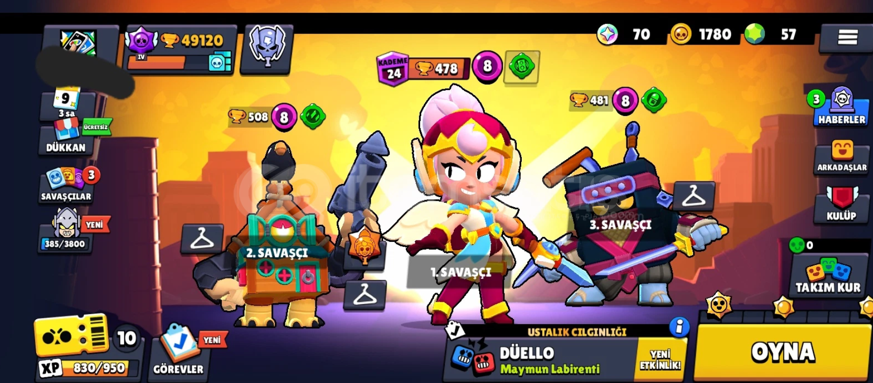 49 BİN KUPA⚡87 KARAKTER MEVCUT 9 MAX 5 HİPERŞARJ KARAKTER⚡9 TANE 1000 KUPA ÜSTÜ KARAKTER⚡57 ELMAS VAR !HESAPTA HERHANGİ BİR KİLİT, ENGEL YEMEMEK İÇİN NE YAPMALIYIM?OYUNDA, SATIM İŞLEMİNDEN BAHSETMEYİN.! Satın aldığınızda bize bildirim geliyor, sizi hiç bekletmiyoruz. hemen aktif olup hesabı teslim ediyoruz.