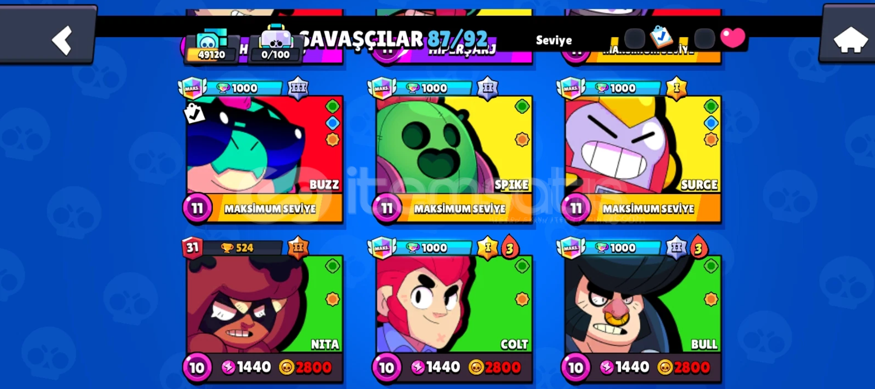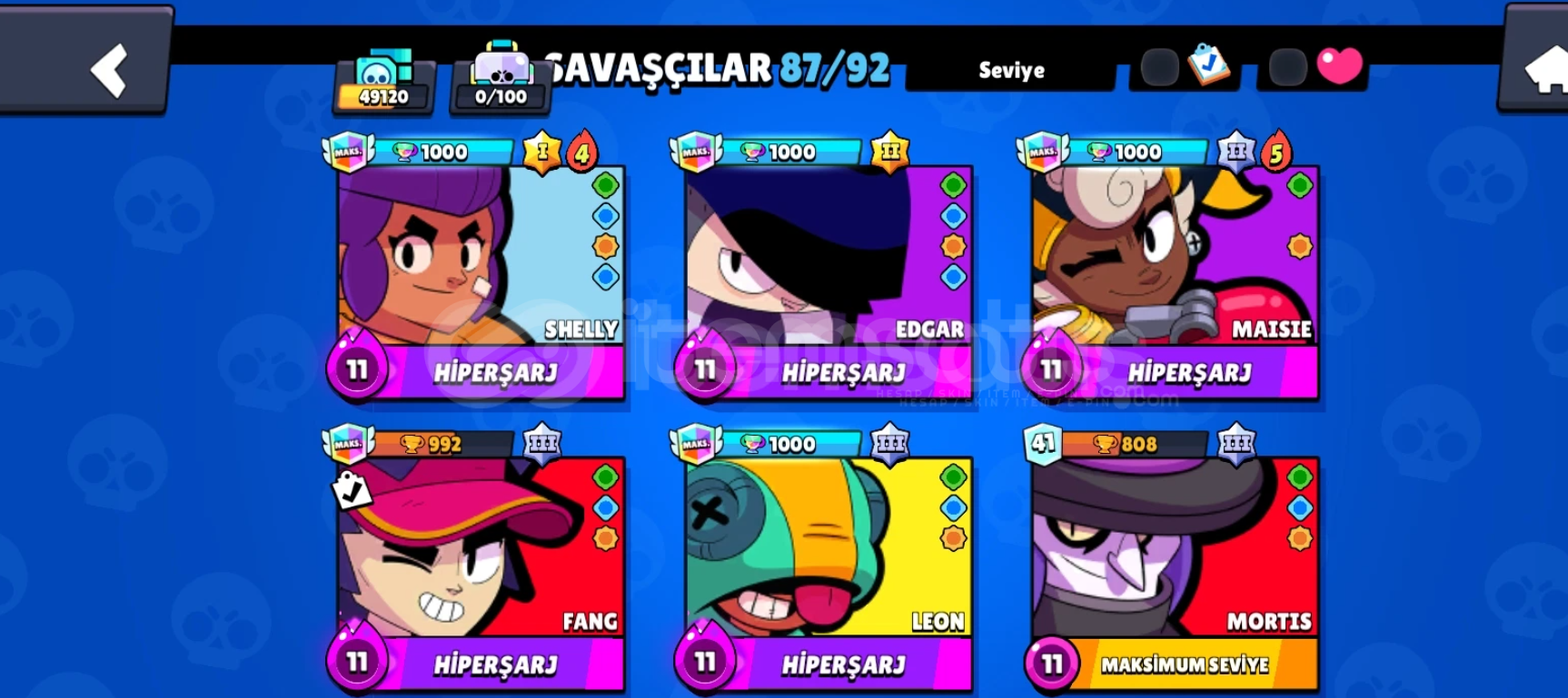 49 BİN KUPA⚡87 KARAKTER MEVCUT 9 MAX 5 HİPERŞARJ KARAKTER⚡9 TANE 1000 KUPA ÜSTÜ KARAKTER⚡57 ELMAS VAR !