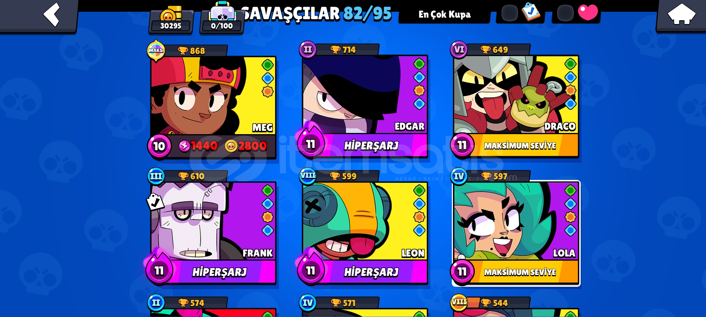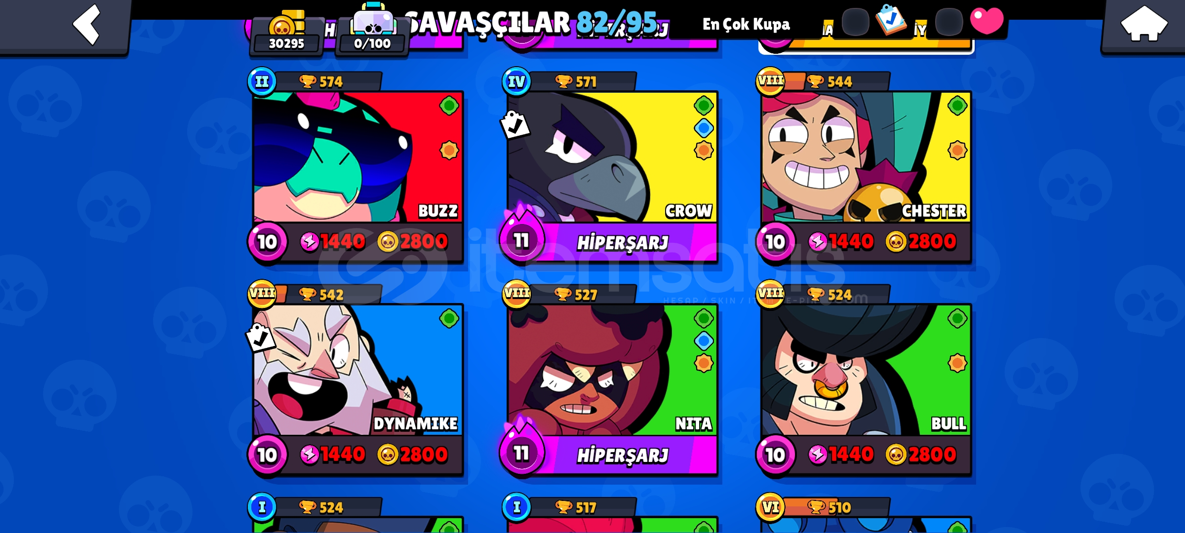 Hesap 2019 dan beri açıktır 5 brawl pass açıktır 30 k kupa ve 82 karakter bulunuyor 109 kostüm var alana ş...