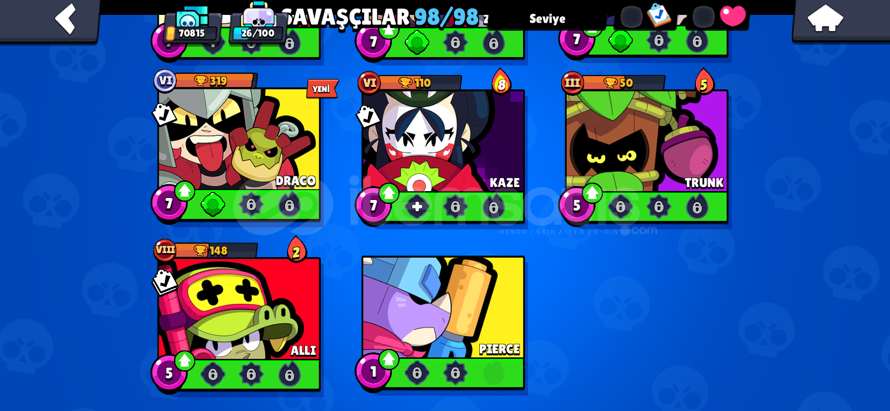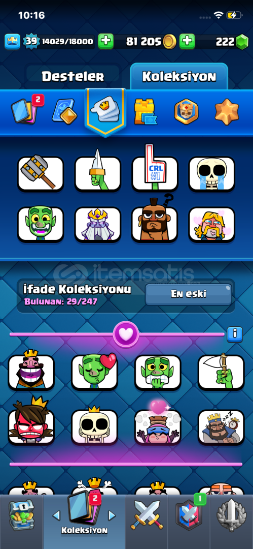 Hesap göründüğü gibidiryanında 6 k lık bissürü toxic emojili clash royale hesabınadirlik babasıdır içinde yok yokMax karakter200 taş pro pass aktif bp plus aktifhesap içinde eski bp ler vardır bir çok nadir kostum vardırkoruma yoktur alana hayırlı olsunJACKY 2 K39 hiper49 max karakter7 hiper kostumnadir 5 pin