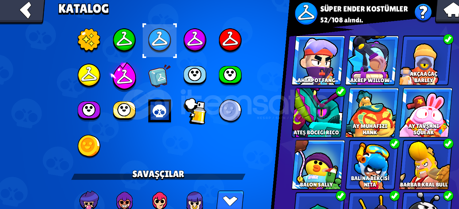 Hesapta karakterlerden sadece 7 tane eksik .kostümleri fotoğraflarını koyacağım hesap gayet güzel 5 senelik hesaptır.35000 kupada Tr de tek alan pişman olmaz ucuza bakarsan vermiyorlar üç kere aldım verilmedi son fiyat pazarlık yaparız begenene