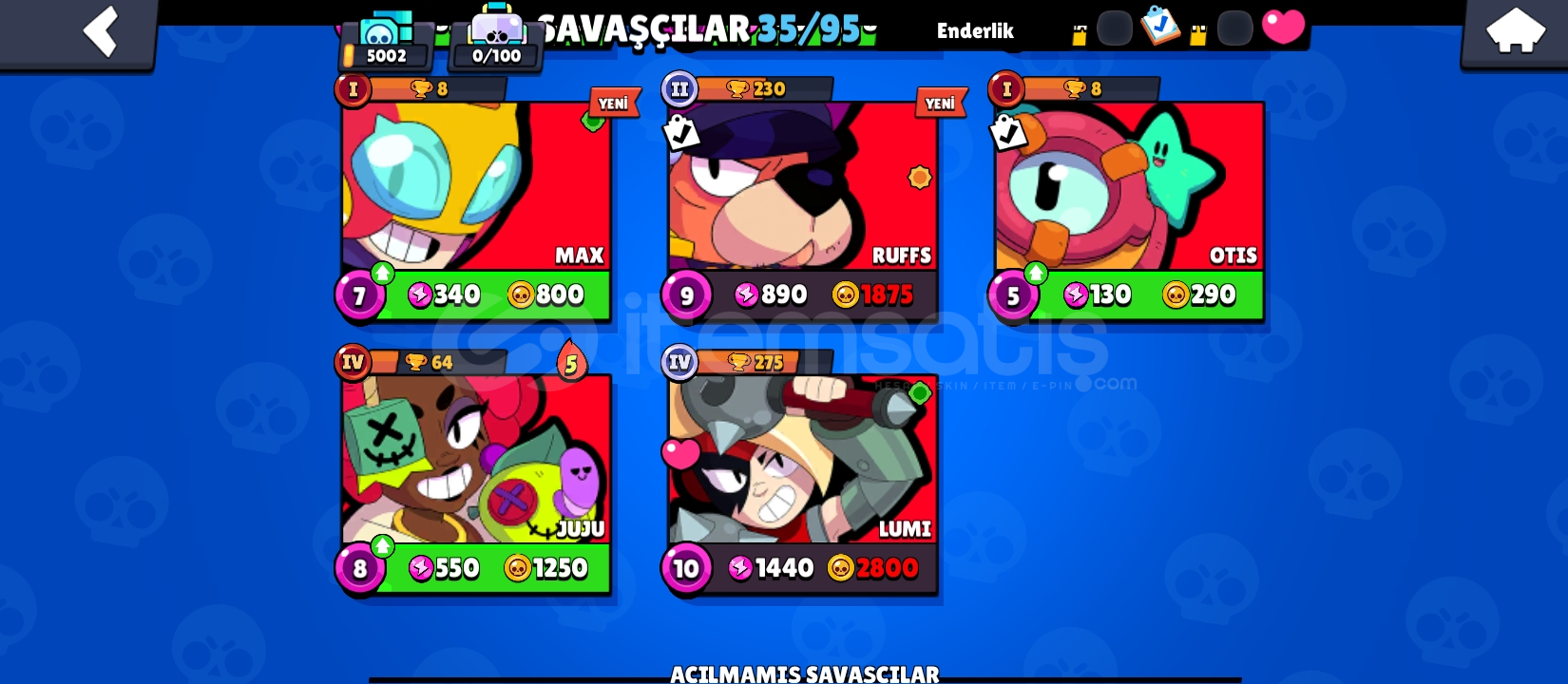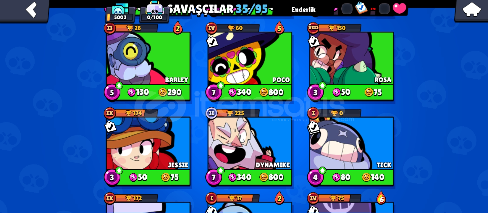 Hesap 5000 kupadırHesapta 1415 altın bulunmaktadırHesapta 1740 Güç puanı bulunmaktadırHesapta 53 Yeşil TAŞ bulunmaktadırHesaptaki çoğu karakter'de kostüm bulunmaktadır
