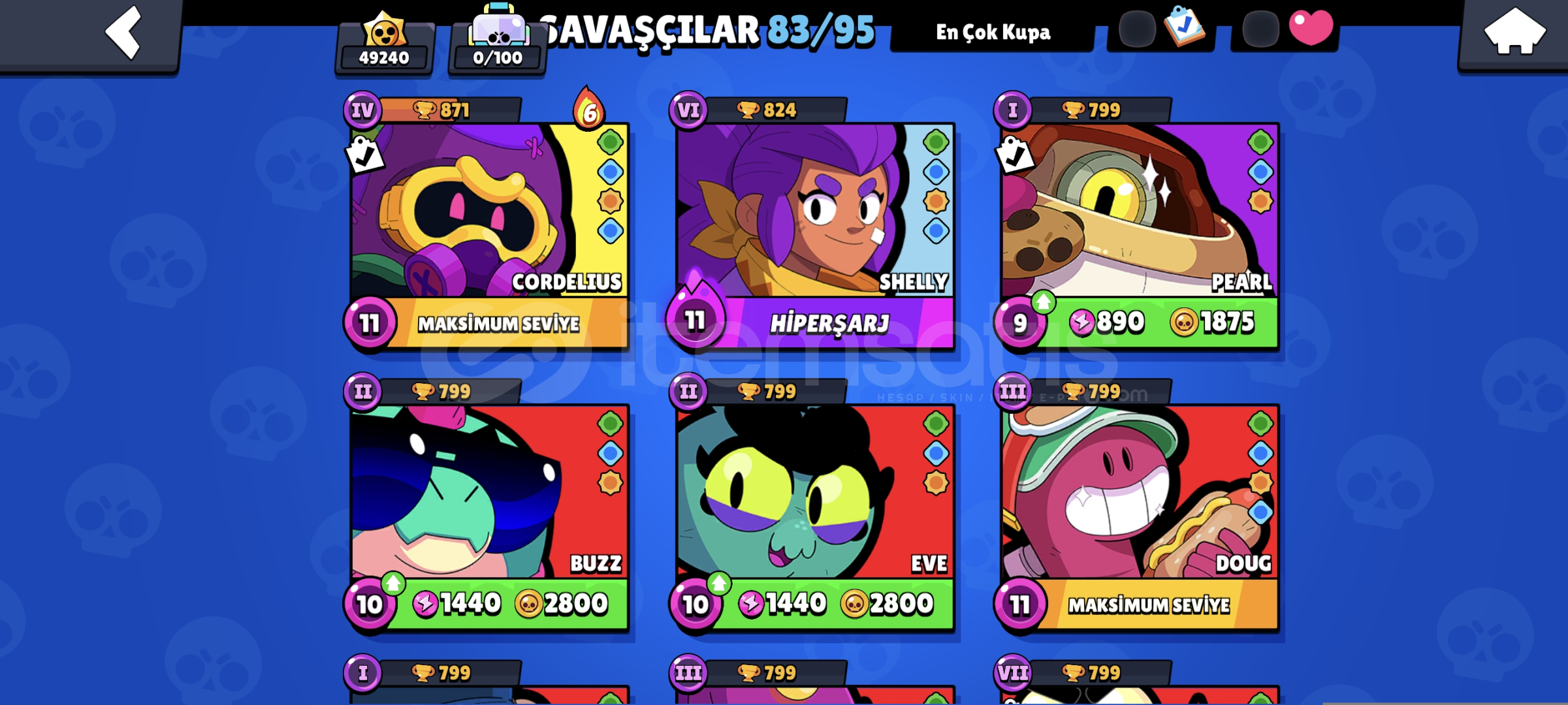 ⭐50.000 KUPA BRAWL STARS HESABI⭐ 120 TANE GÜZEL KOSTÜM VAR⭐15 KARAKTER MAX⭐6 YILLIK HESAP⭐ HIZLI TESLİMAT ⭐MAİNLİK TERTEMİZ HESAP