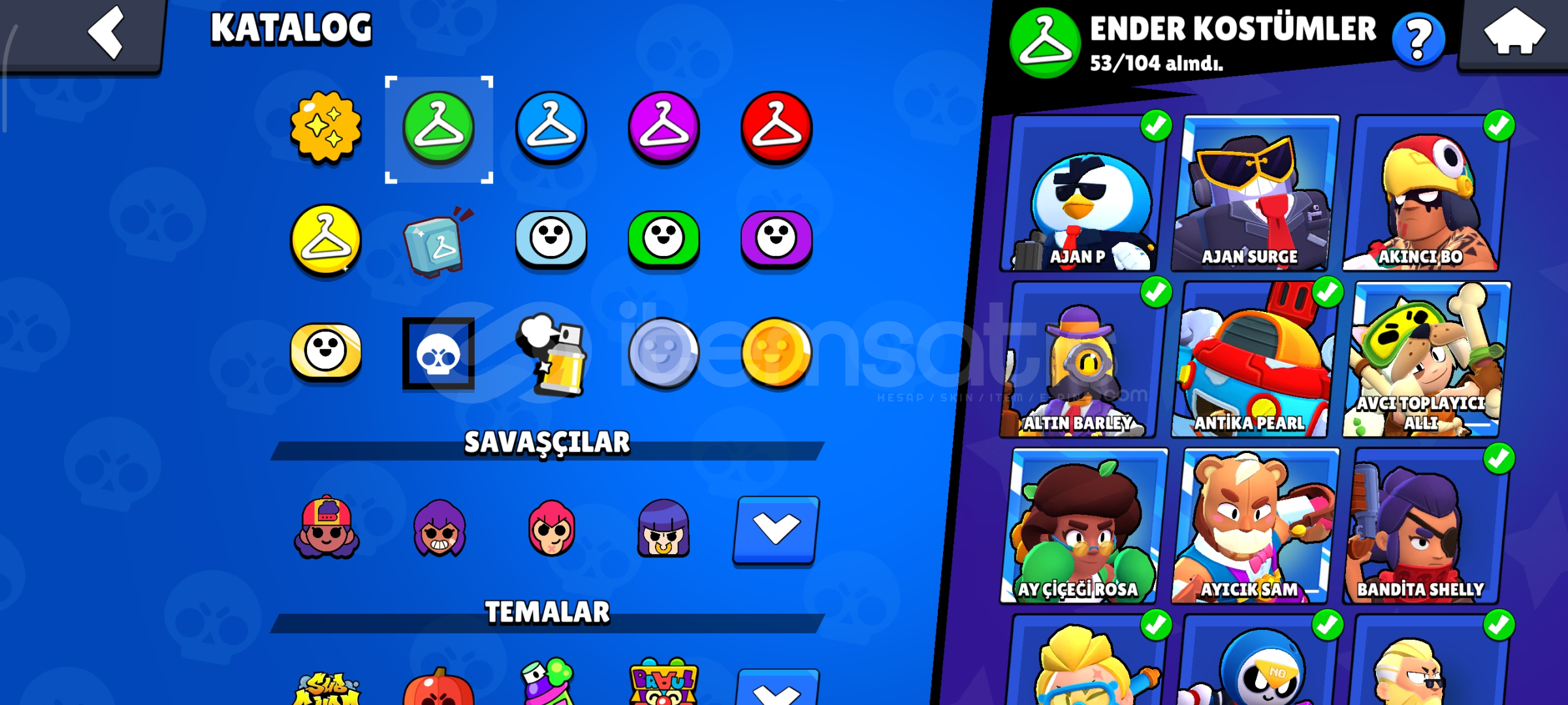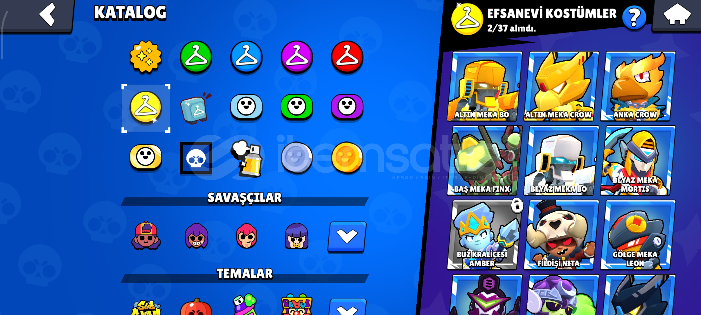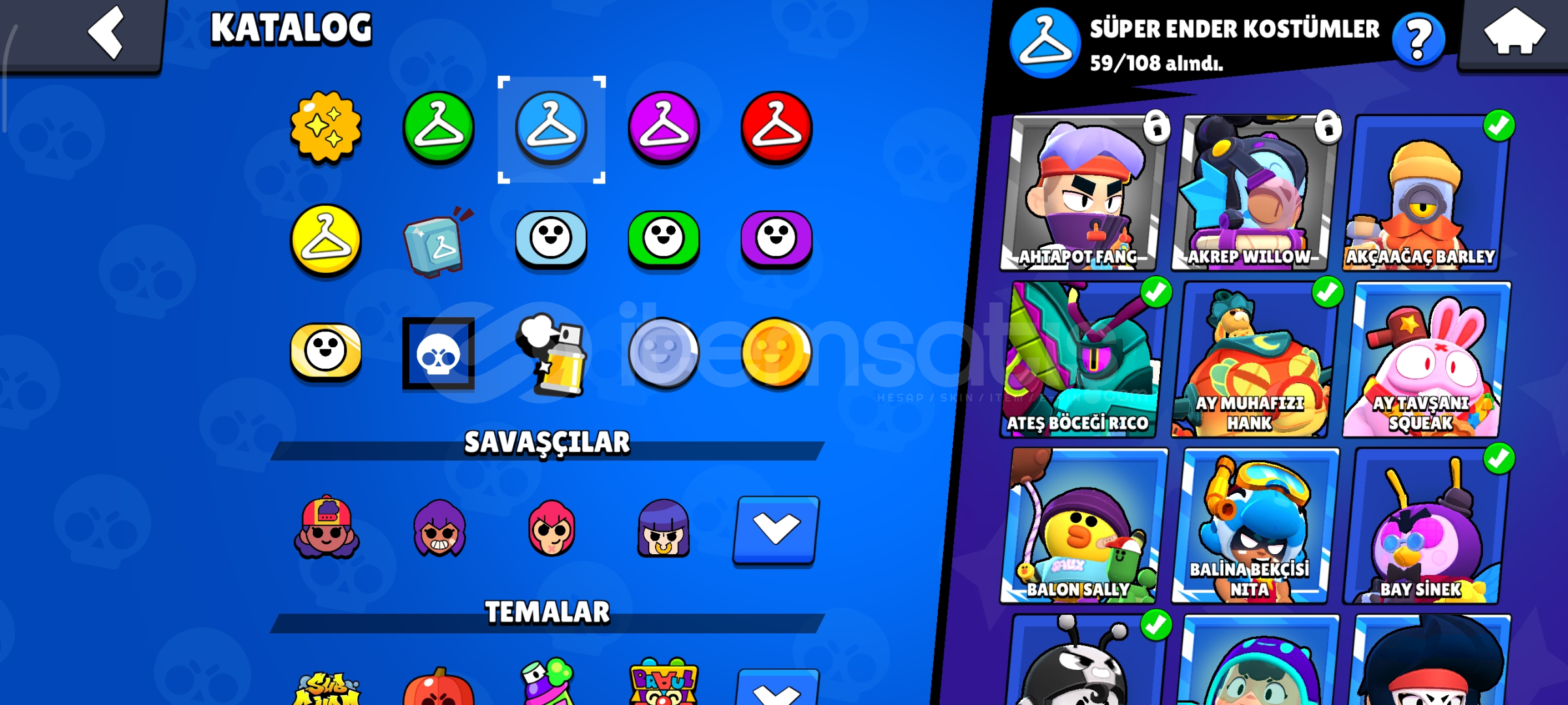 Hesabı satın aldığınızda, herhangi bir Brawl Stars hesabına bağlı olmayan, size ait bir e-posta ile değişiklik yapılacaktır. Veya direkt mail şifresi ile birlikte size verilecektir.Kostüm Detayları:- 53 Ender Kostüm- 59 Süper Ender Kostüm- 35 Destansı Kostüm- 2 Efsanevi Kostüm