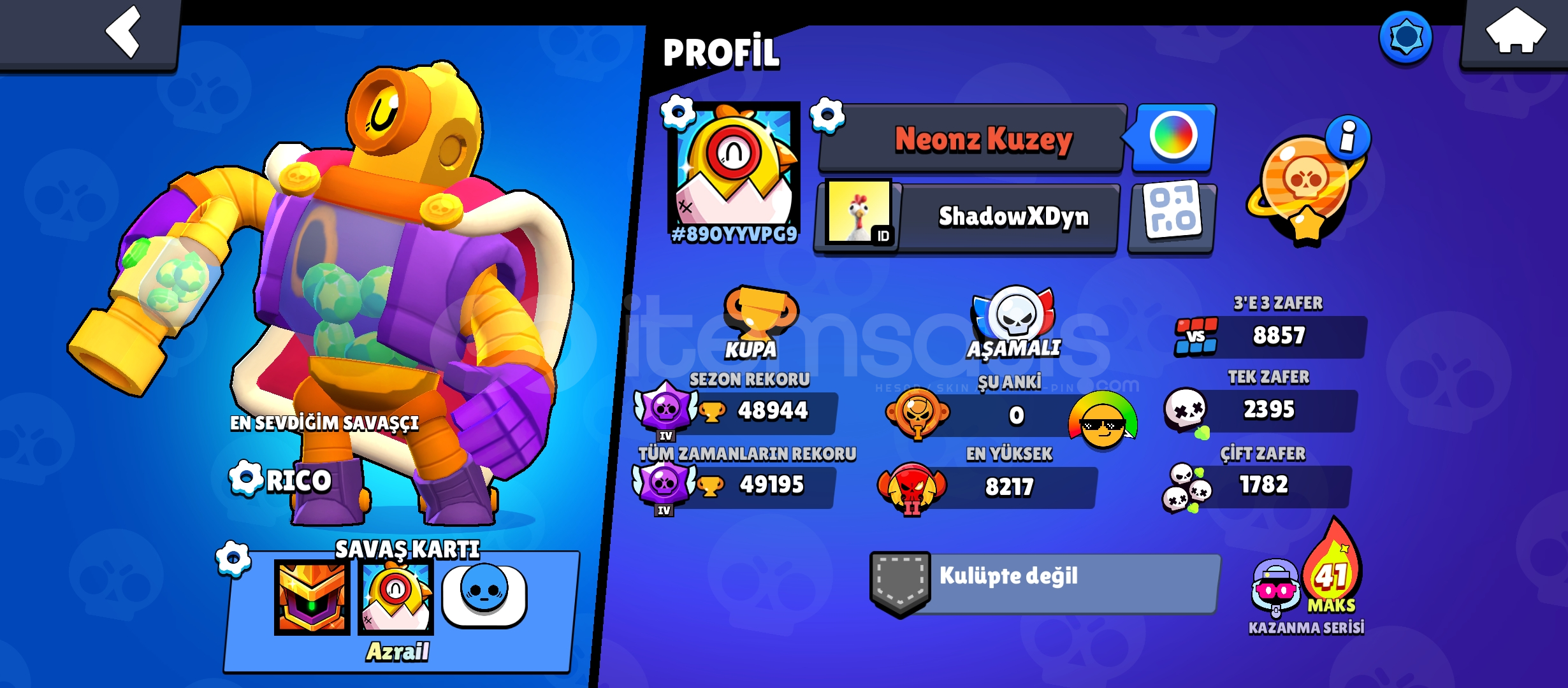 Hesap 49K kupadır ve herkes için çok iyi kullanılabilir.İçindekiler: 60 Ender50 Süper57 Destansı4 Gizemli6 Efsanevi3 HipersarjÖzel=Kahraman bibi,şeytan mortis,Antivirüs-8bit,D4R-RY1 darrlyKostümü bulunmaktadır..87 karakter,Satürn 1'e sahiptir.Daha fazla bilgi için dm